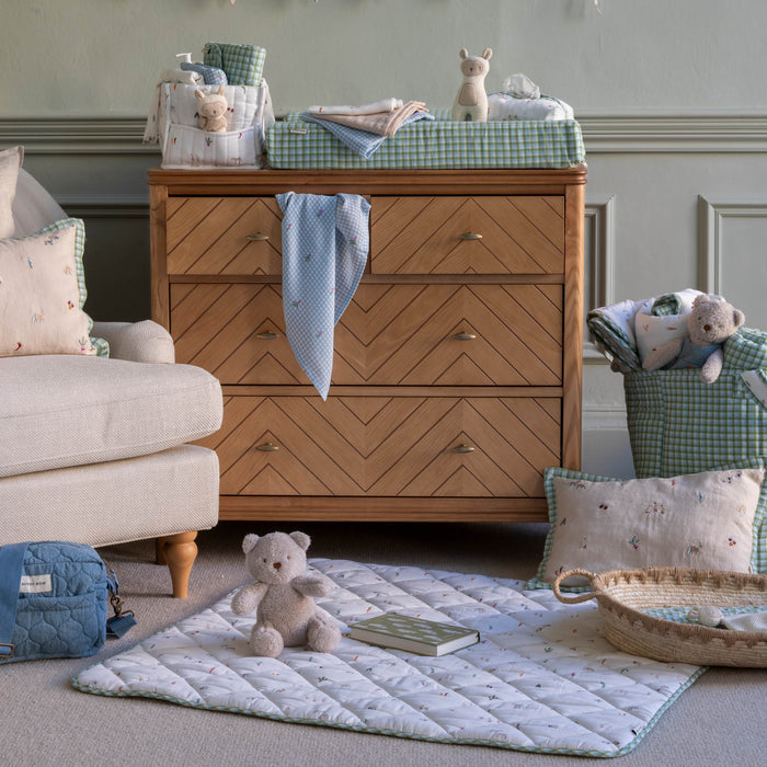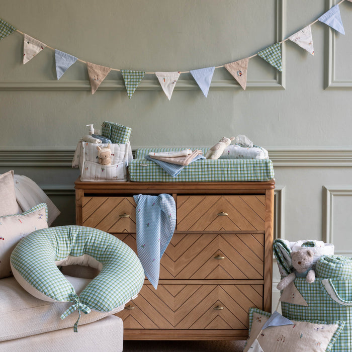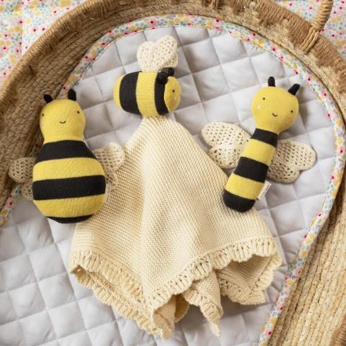Featuring knitted blankets, cot sheets, soft toys and snuggly comforters.
