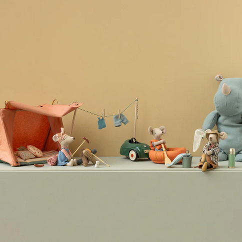From doll prams and baby dolls to dress-ups, dinnerware, decor and toys, discover the whimsical Danish world of Konges Sløjd.