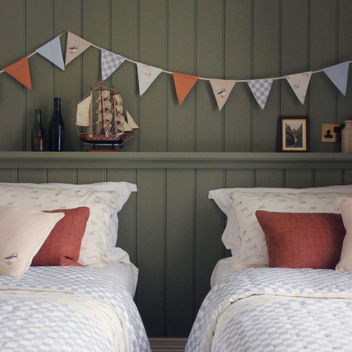 Inspired by sea-worn landscapes, this collection includes king single bedding, pillowcases and cushions designed to bring relaxed coastal style to older kids’ bedrooms.