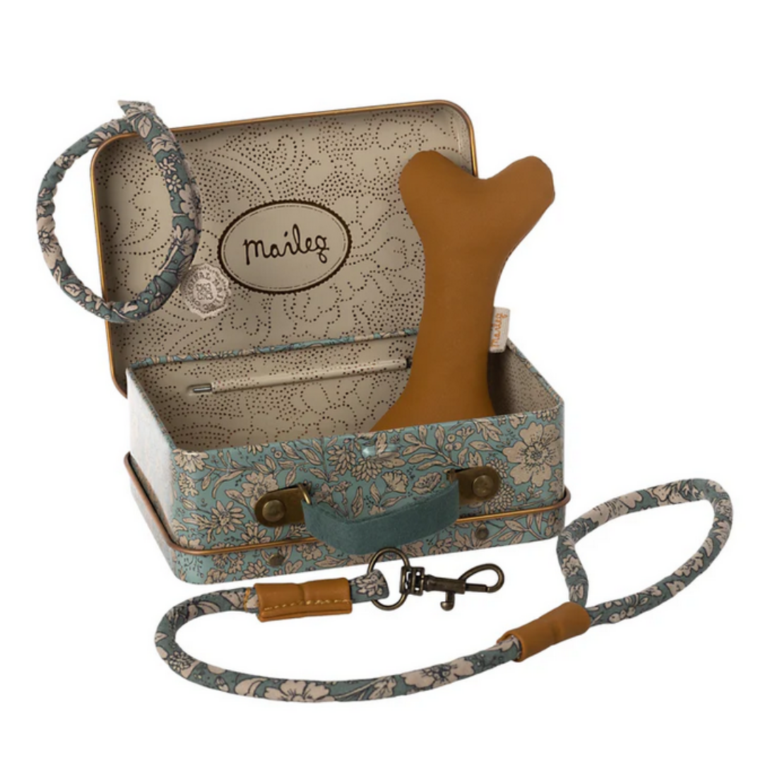 From the moment those little paws hit the ground, you'll find yourself swept away in a whirlwind of laughter, games, and boundless energy. Maileg's Puppy Supply is a lovely starter pack to begin your puppyhood journey. Embark on new adventures like a walk in the park with Maileg's adorable leash and collar. Let puppy sniff out all the hidden treasures and run after those sneaky squirrels.