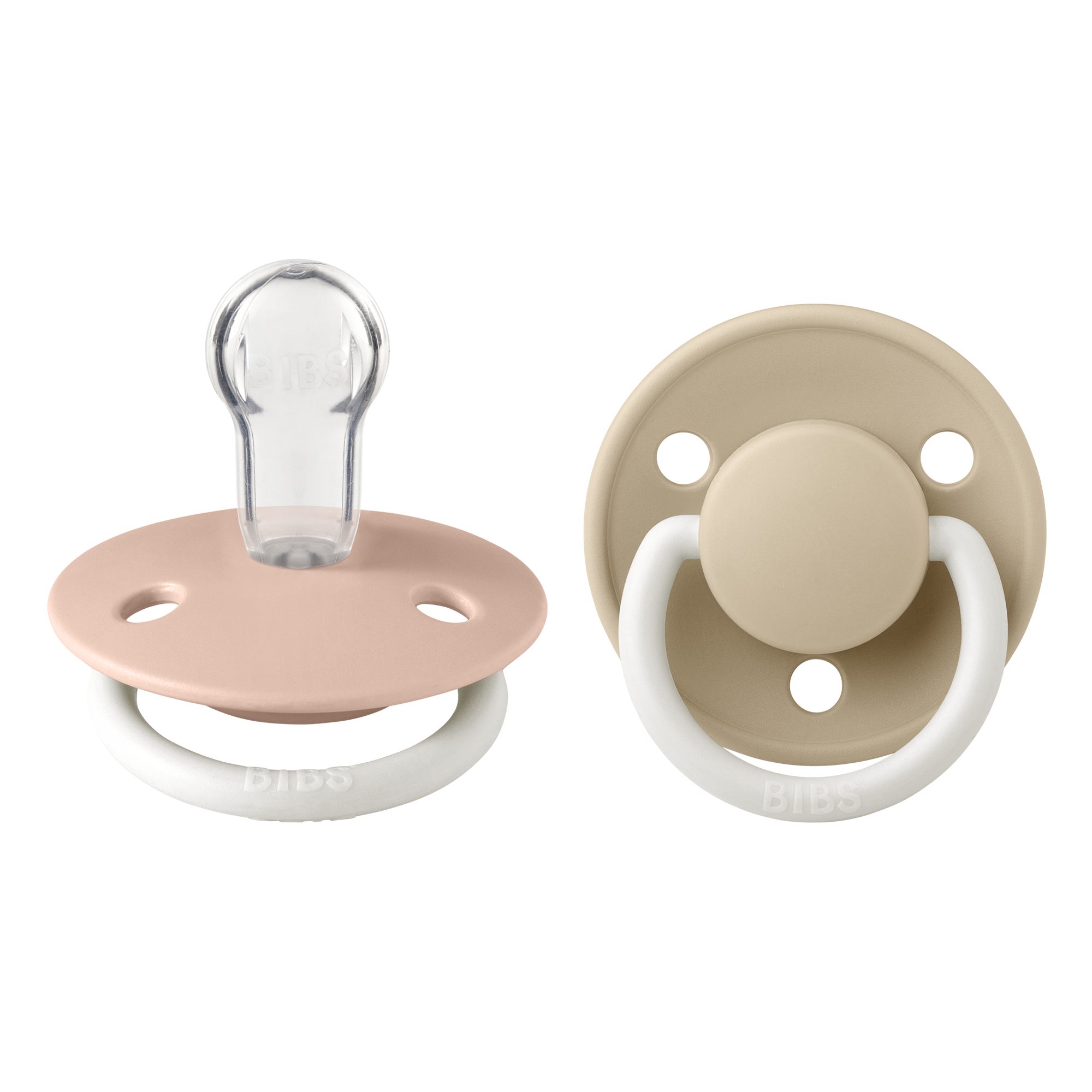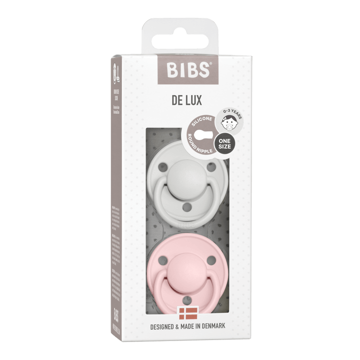 Our De Lux pacifier is our modern and timeless pacifier, with an elegant hidden gathering in an enhanced matte finish for a Premium look. The dup is made large, so it is easy to print a name on, making it perfect for daycare. The nipple on our De Lux pacifier is a round nipple that resembles the shape and size of the mother’s breast to provide comfort to your baby. Further, the round nipple promotes a similar tongue placement and sucking technique when breastfeeding, since the round shape allow the sides of the tongue to elevate and cup around the nipple, just like it does during breastfeeding.