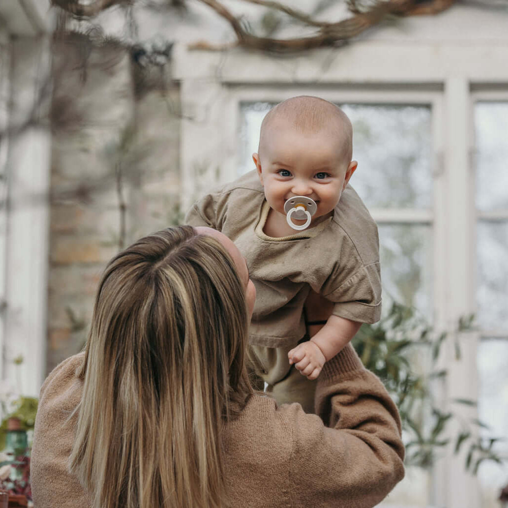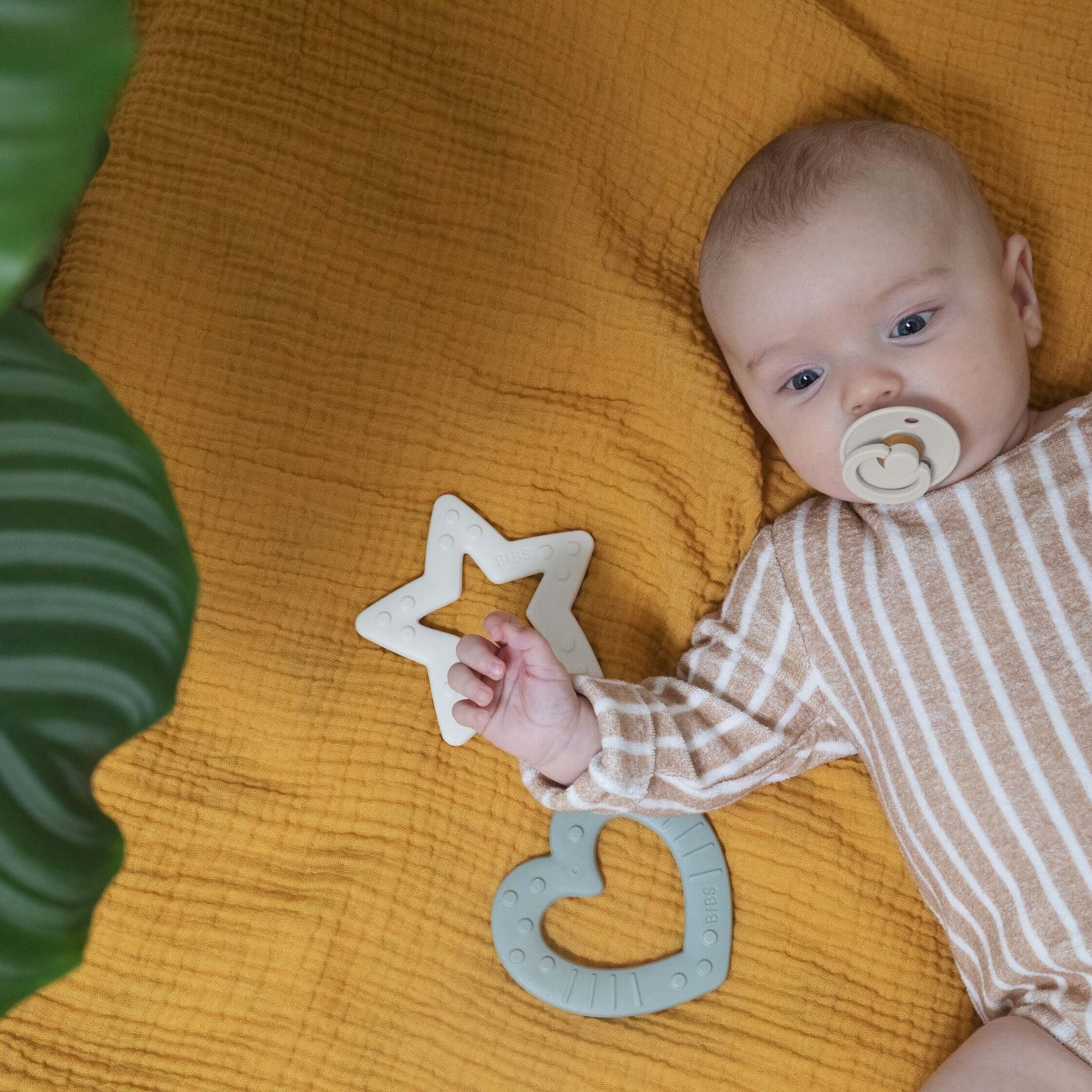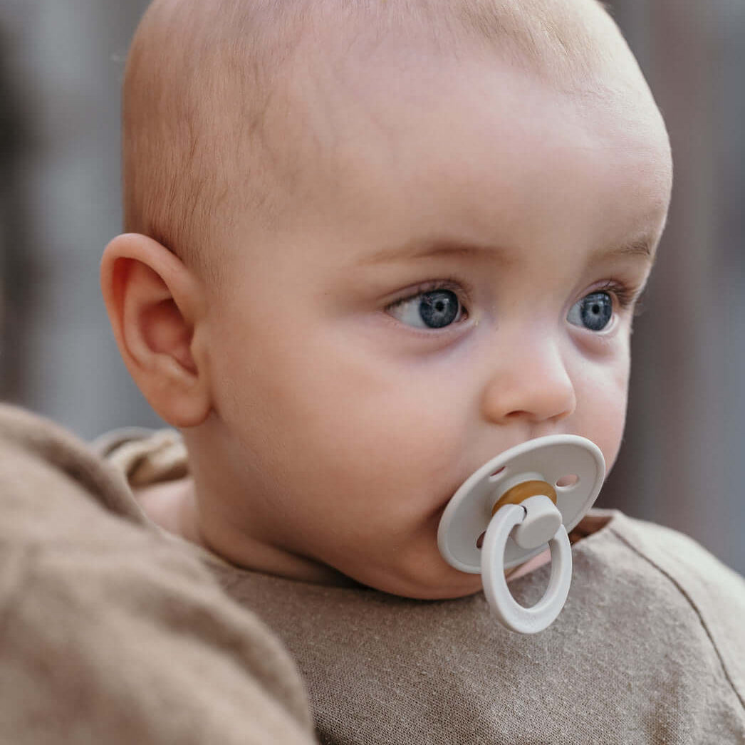 Natural rubber latex is a natural material, where silicone is an industrial material. The silicone we use in our pacifiers is food-grade silicone, which is 100% free of harmful and endocrine disrupting ingredients such as BPA, PVC, and phthalates.