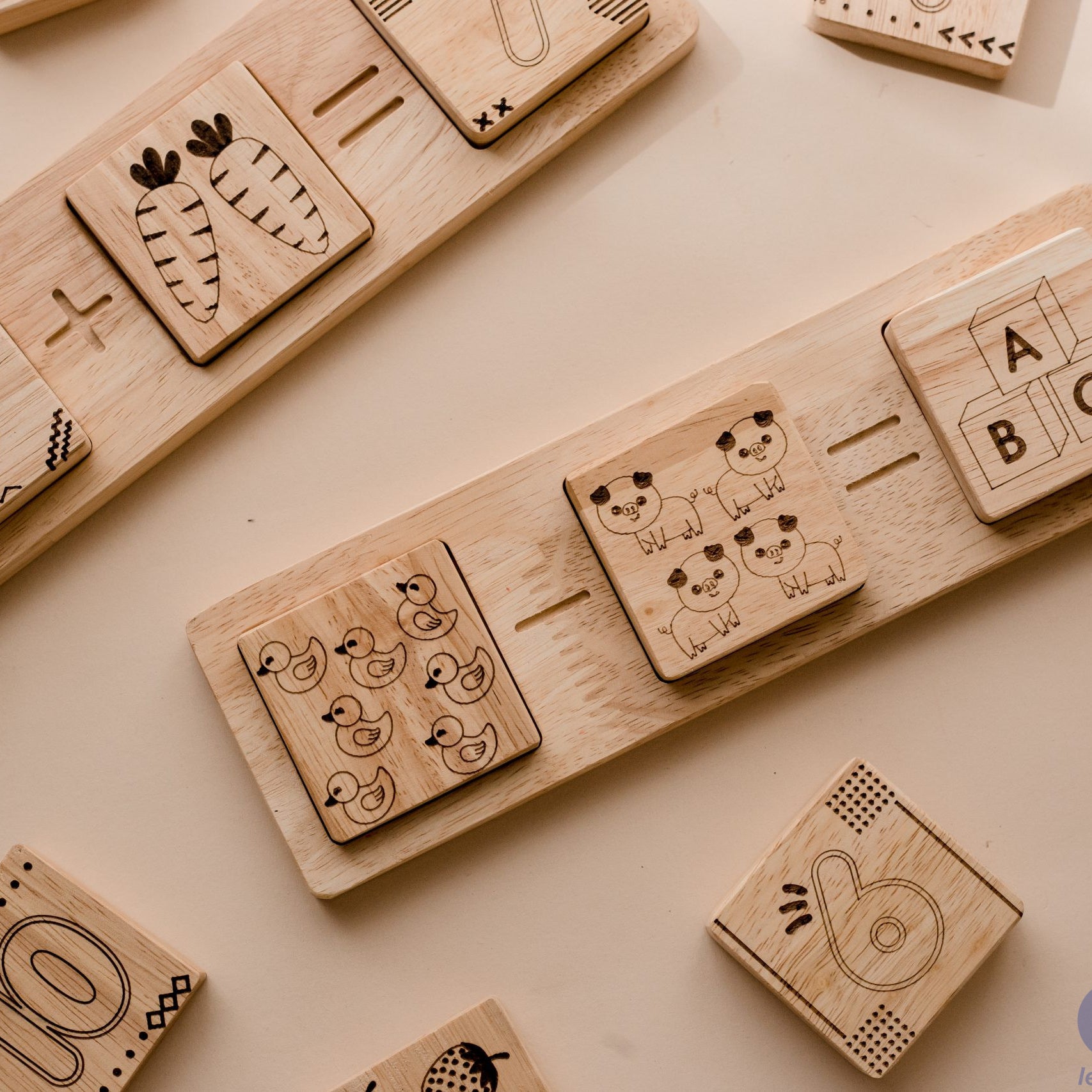 Math and Numeracy Toys: These toys introduce mathematical concepts and help children develop a concrete understanding of numbers, quantities, and basic mathematical operations. Examples include number puzzles, counting rods, shape sorters, and bead materials.