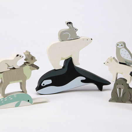 Tenderleaf toys are mainly sold in complete sets: dinosaurs, farm yard, safari and coastal as well as part of smaller stacking sets.