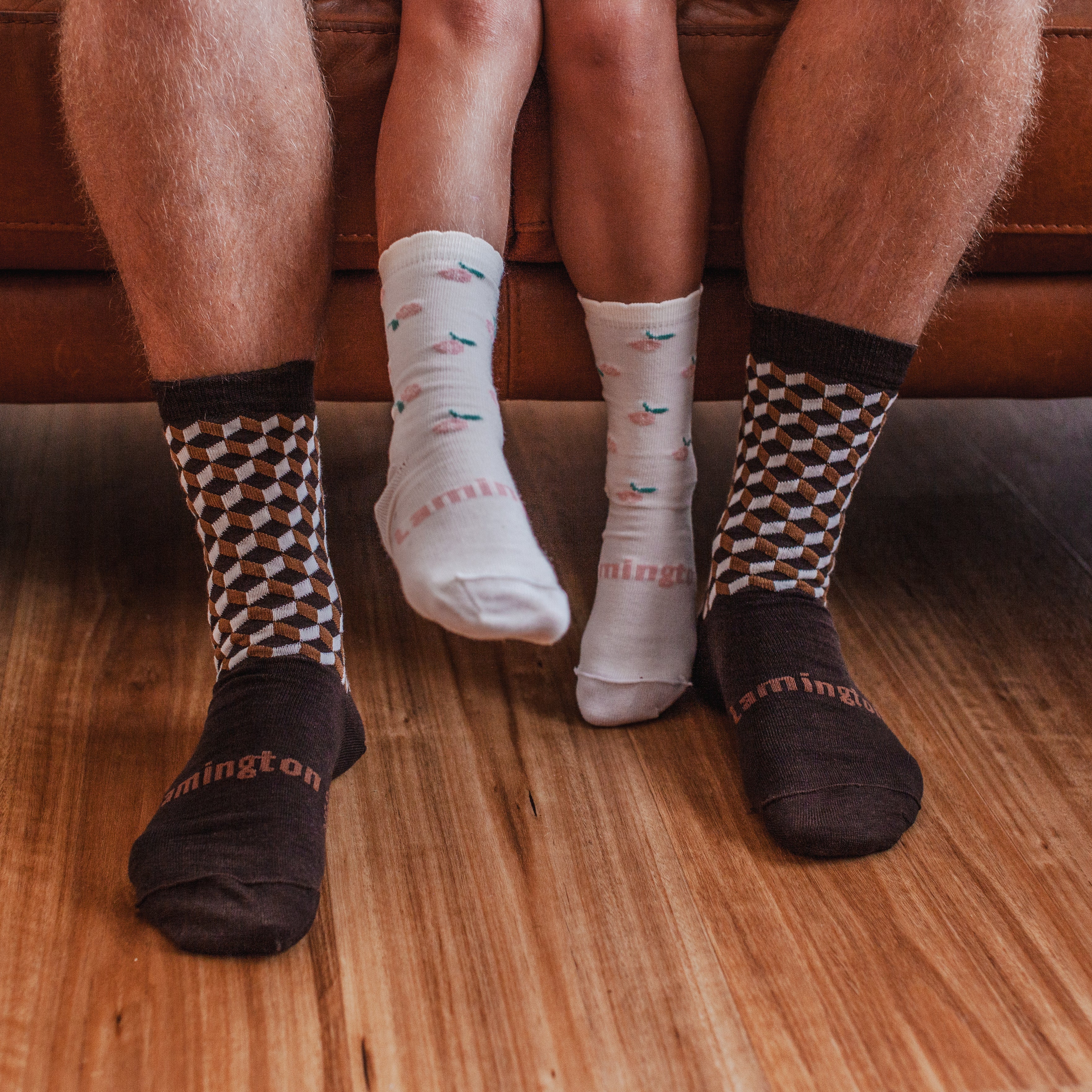 New Zealand Made, 70% Merino wool, sizes knitted into every pair so no confusion over whose are whose!