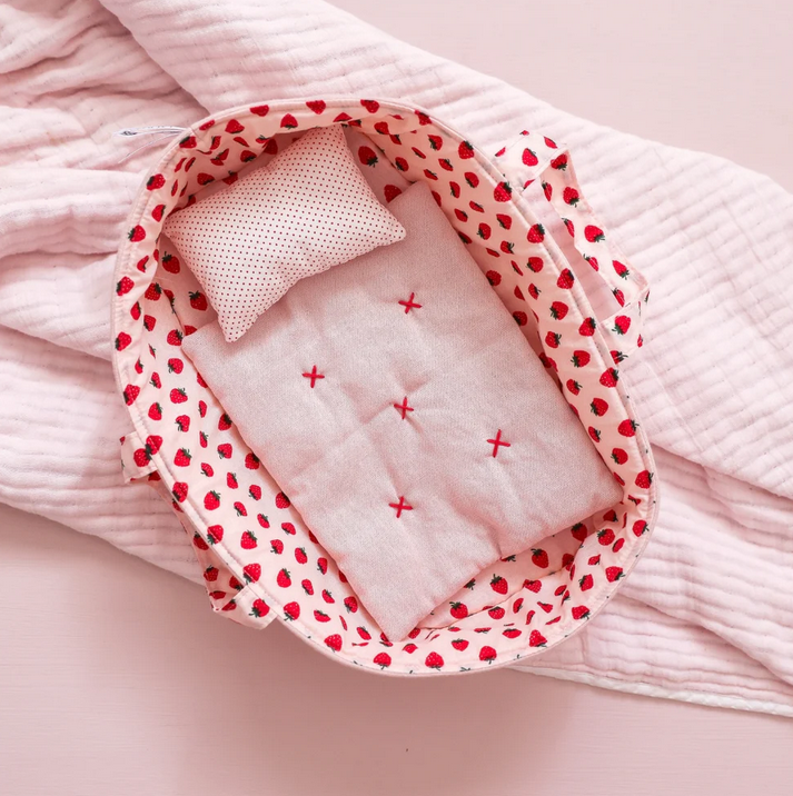 Tuck your little doll in for the sweetest dreams with our Reversible Fabric Doll Carrier Set, the perfect home for playtime snuggles and make-believe naps! Crafted with love and care, this darling basket comes complete with a soft fabric pillow and a mini quilt, ready to keep your baby doll cosy and content.