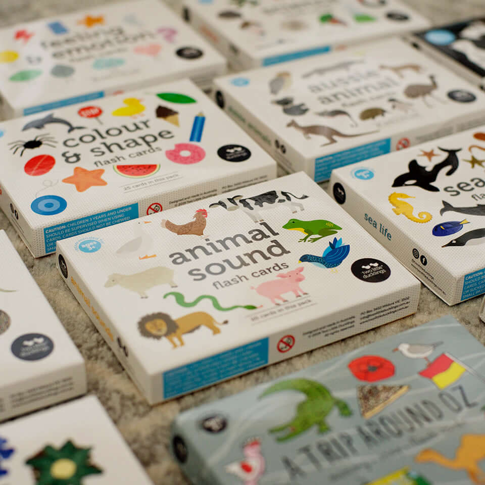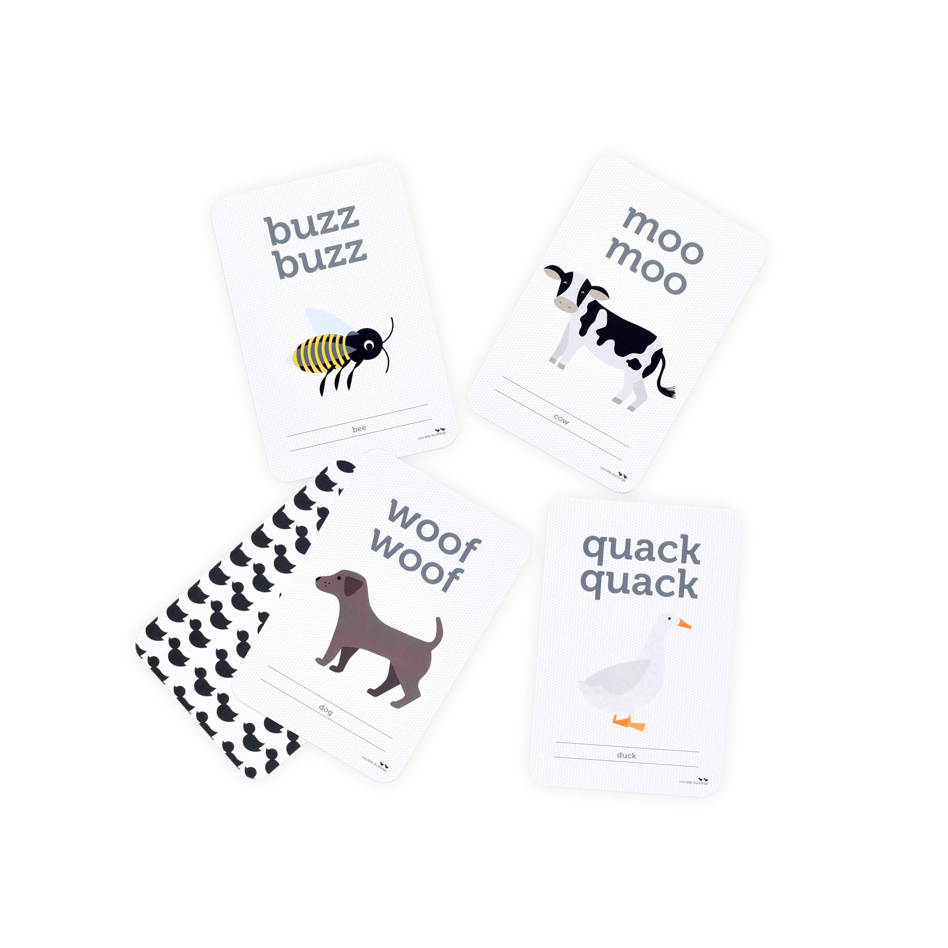 Make learning the sounds animals make fun with this set of brightly-coloured illustrated flash cards. The cards feature a range of different animals and the sounds they make. Each card is laminated and features rounded corners for long life and durability. Proudly Australian made and printed on environmentally friendly paper. Cards are 10cm x 15cm in size.