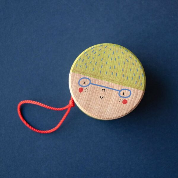 Beechwood yo-yos made in Europe. A traditional toy with beautiful illustrations of friends.