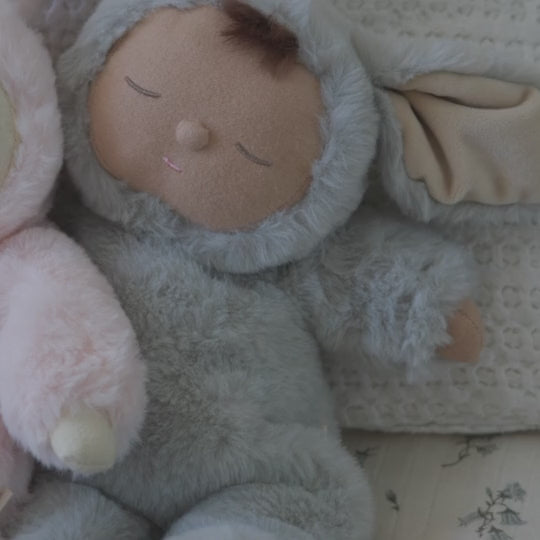The Lullaby Cozy Dinkum Bunny Pip in Smoke brings a calming touch to bedtime with its soothing melody. When you pull its fluffy tail, it plays a gentle instrumental version of "You Are My Sunshine," making it the perfect companion for peaceful moments. Soft, cuddly, and wrapped in cozy neutral tones, Bunny Pip is ready to offer comfort, snuggles, and a lullaby to help drift off into sweet dreams.