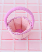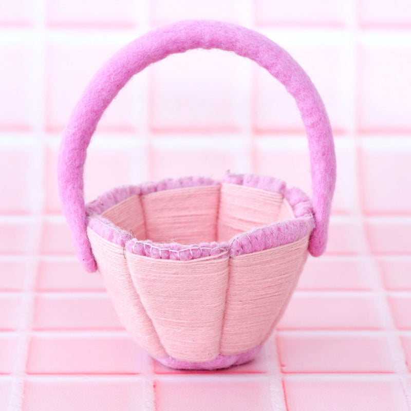 Hop into Easter fun with our Petite Pink Felt Easter Basket! This smaller basket is crafted from soft felt and features a charming string weave detail, adding texture and a handmade touch.