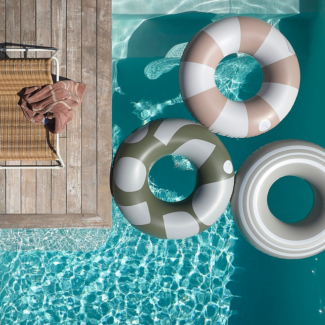 The &SUNDAY Nostalgia Oversized Pool Tube brings a timeless charm to your pool days with its Vintage Stripe design. Crafted in earthy, natural tones, this oversized float is inspired by classic tube floats, evoking a sense of nostalgia and laid-back summer vibes.