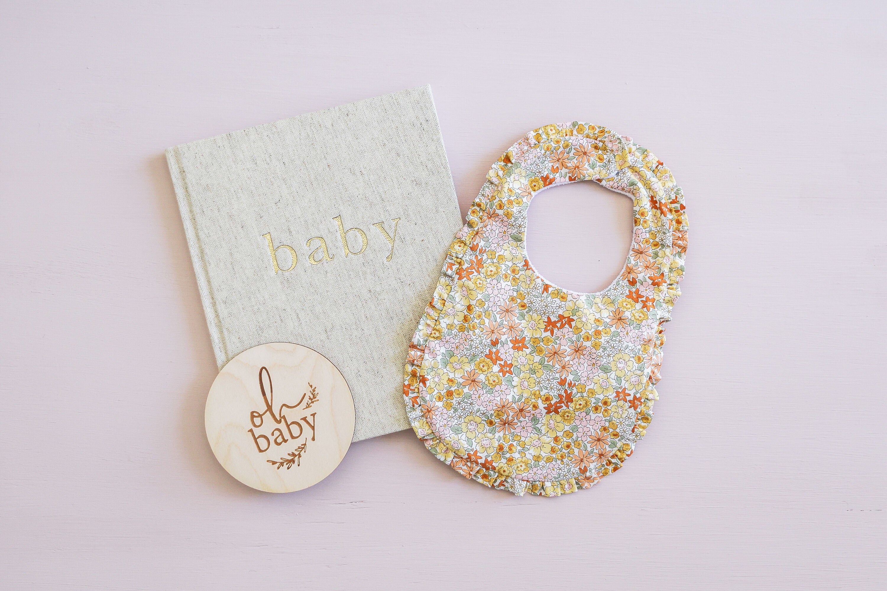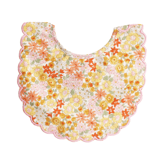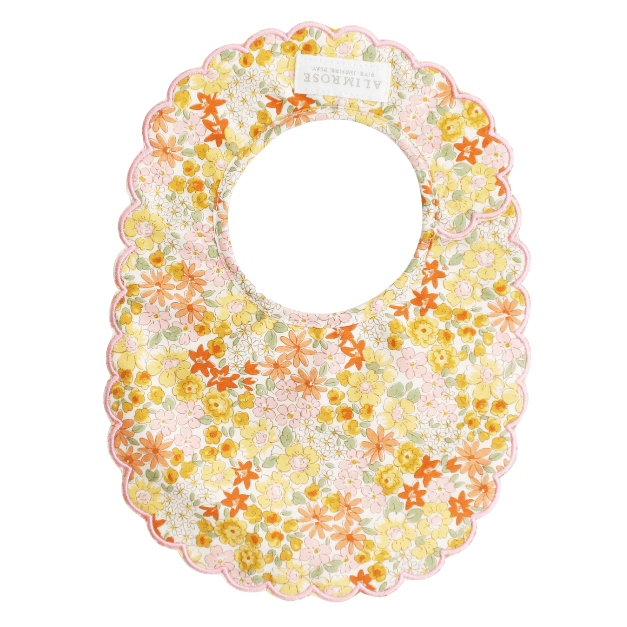 Such a pretty bib! A favourite for dressing up those tiny newborn babes Featuring a soft blue floral fabric with pink edge trim. Velcro fastening. Machine washable.