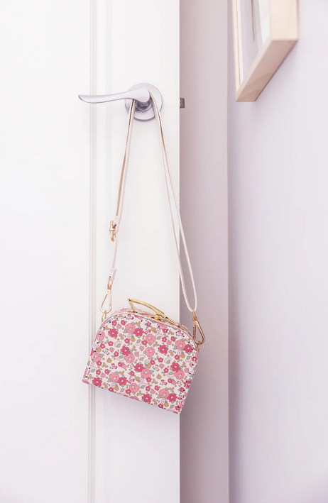 A fashionable cross body mini case in a sweet little floral print. The cutest size and adjustable strap.