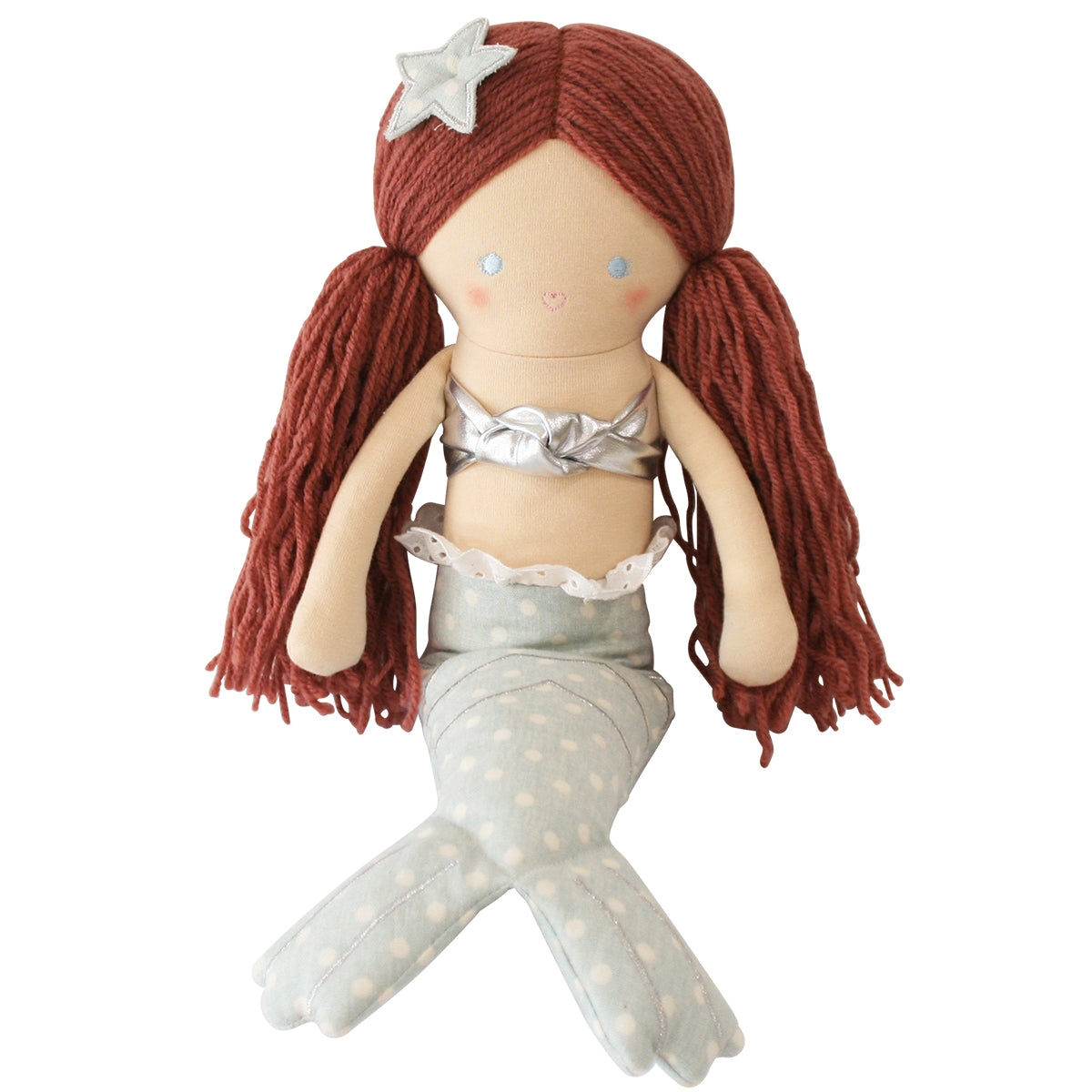 Beautiful Mila Mermaid doll with her cute aqua featured tail and beautiful red yarn hair with matching aqua star. She will just be as popular as Ariel in the Little Mermaid.