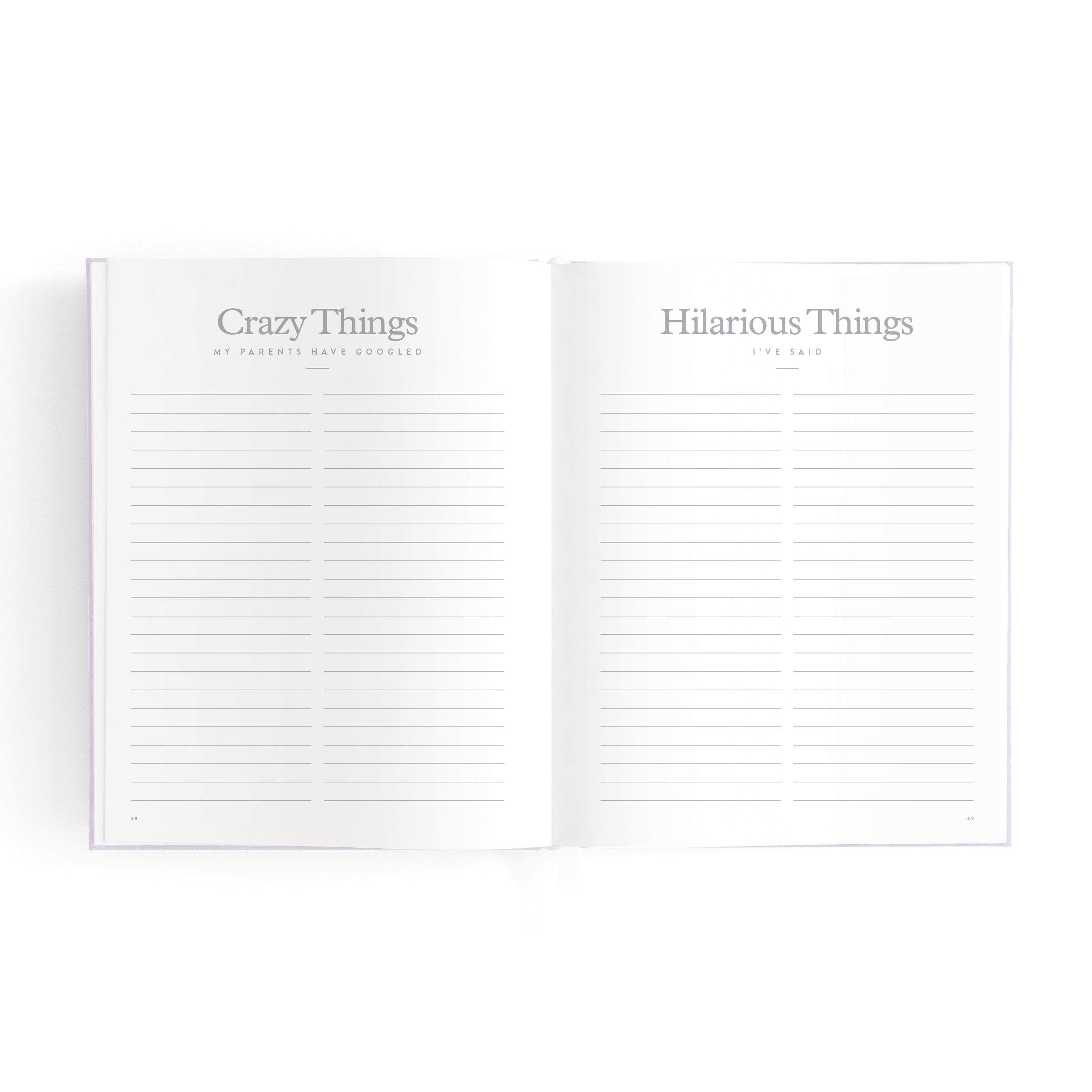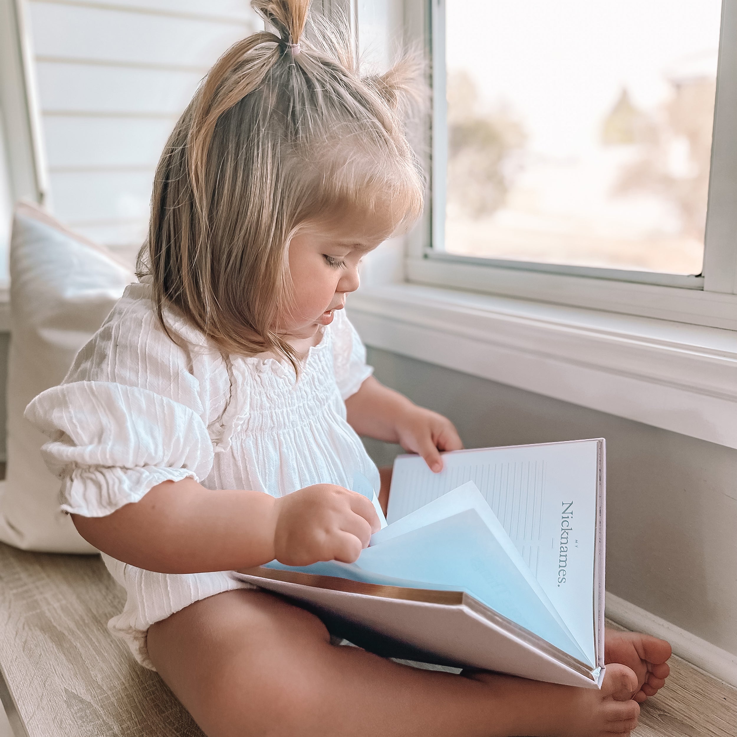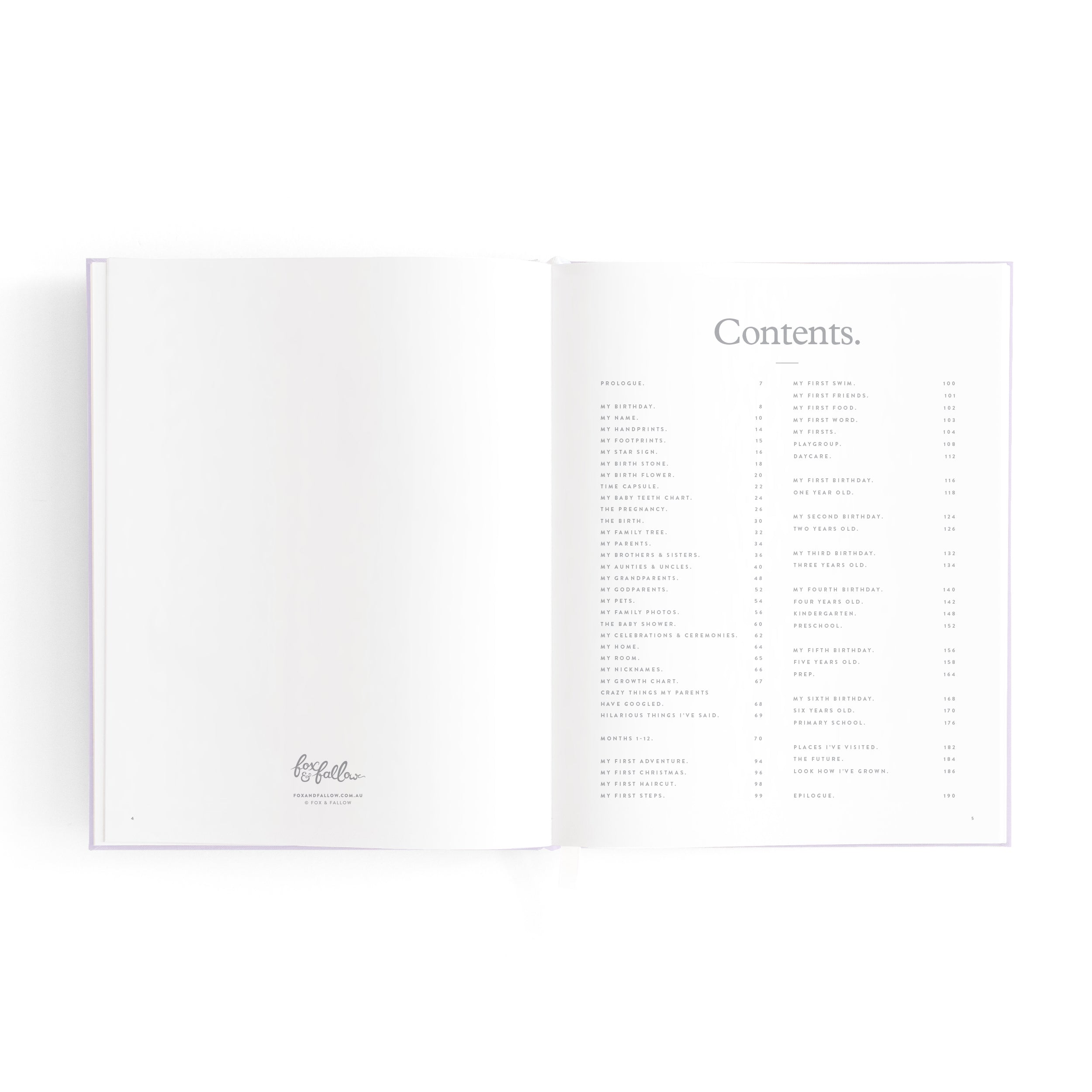 A beautiful keepsake for the whole family to enjoy. Includes: important milestones and firsts, family profiles, family tree and travel map, playgroup and daycare through to kindy and school years, time capsule, nicknames and celebrations, pets, friends, birthdays and more.