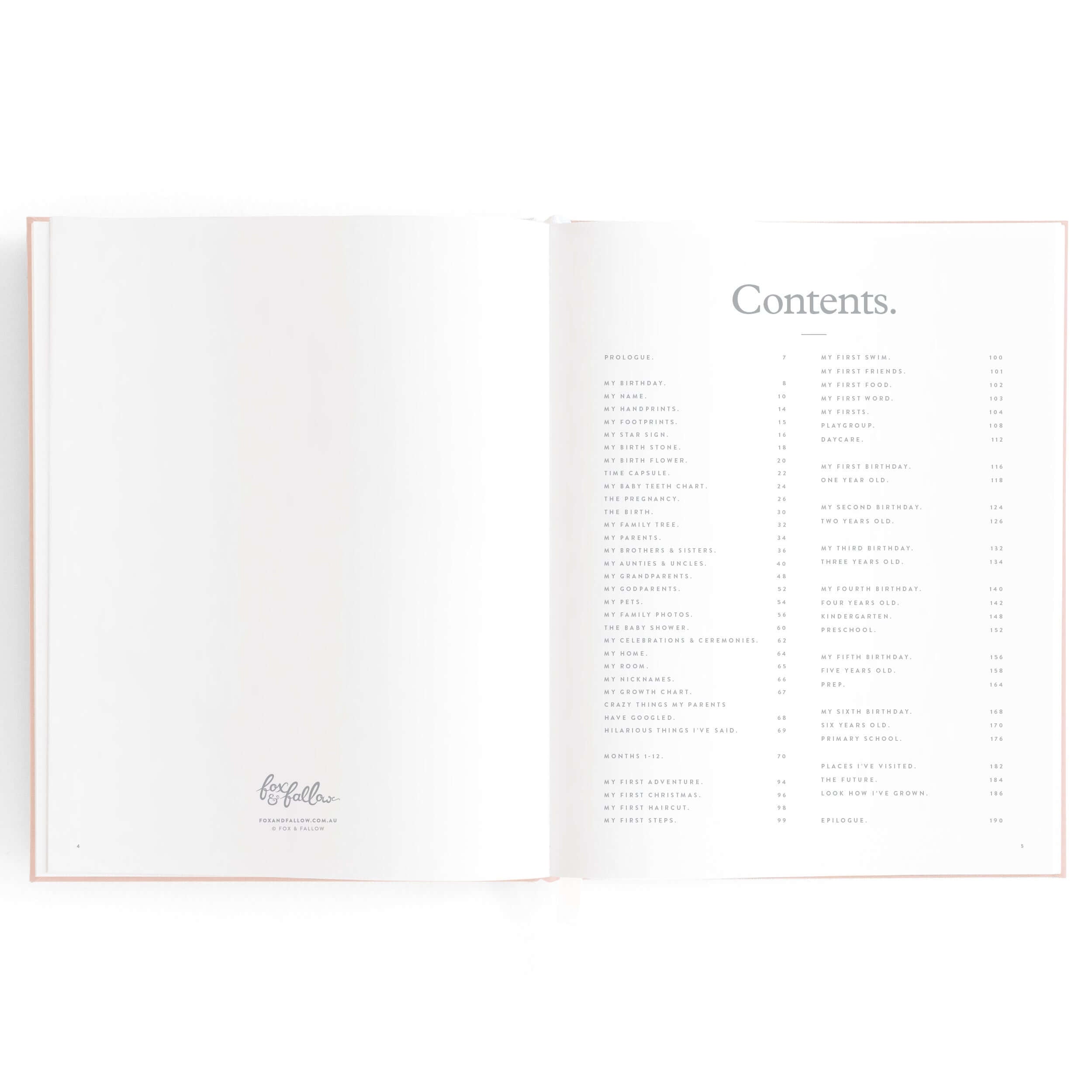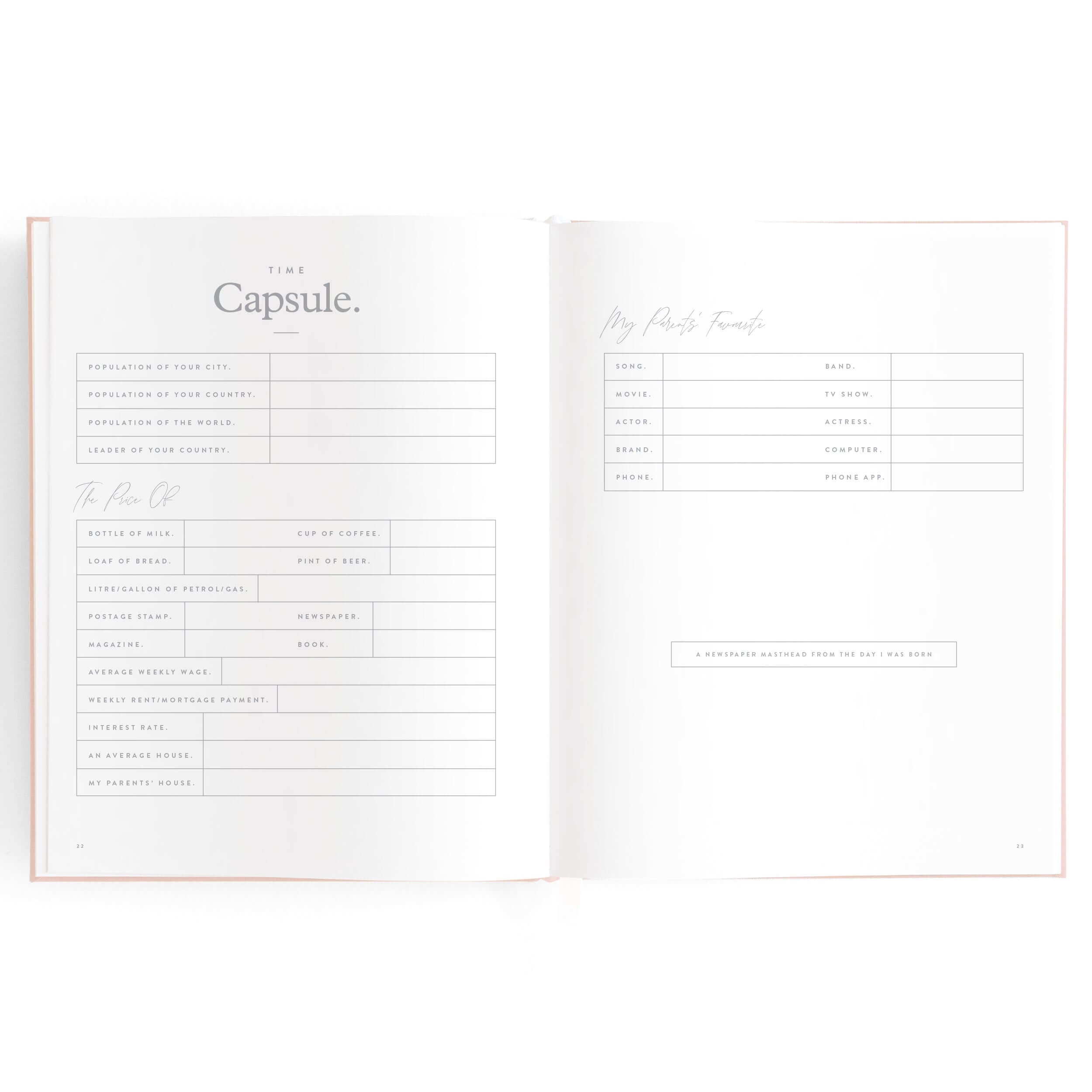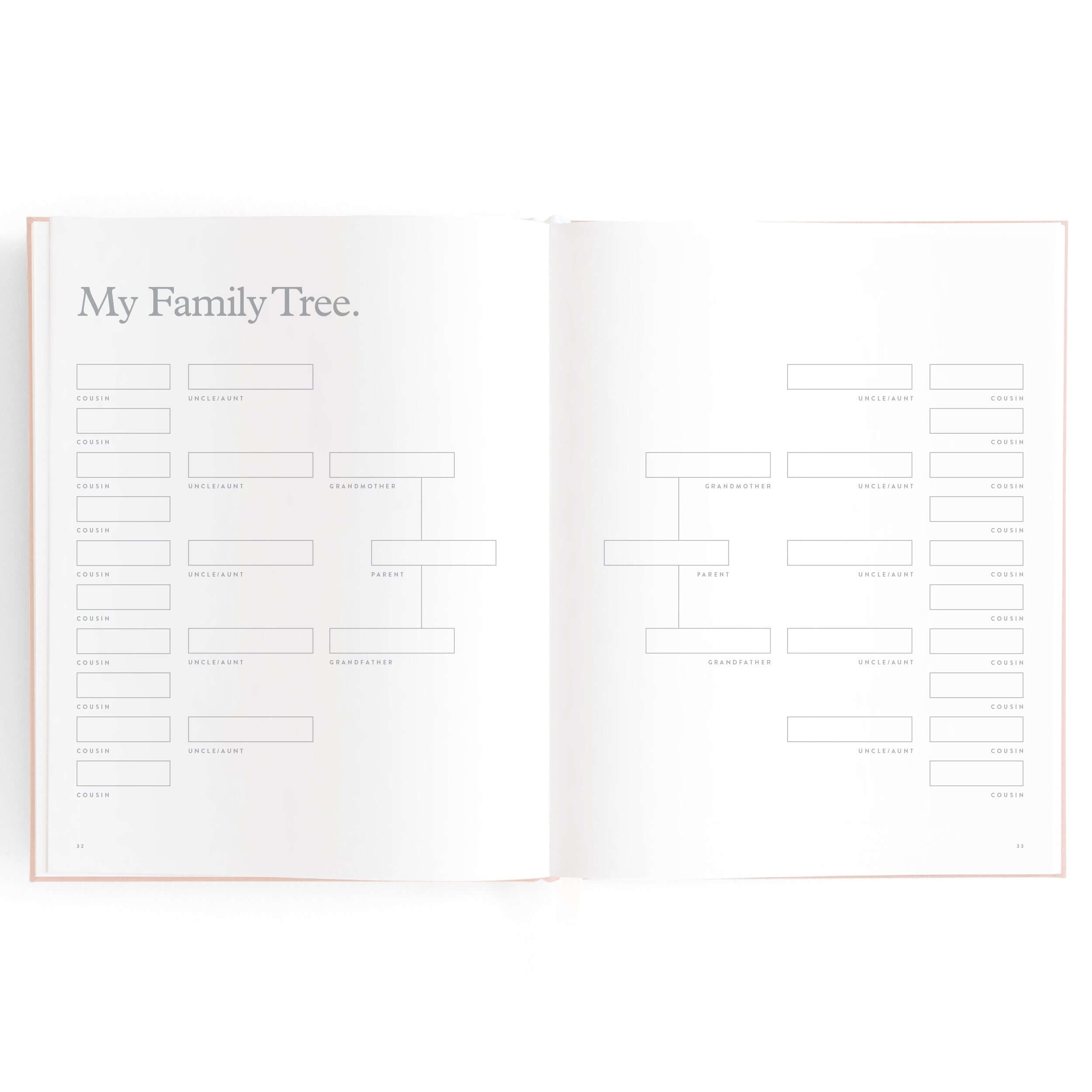 A beautiful keepsake for the whole family to enjoy. Includes: important milestones and firsts, family profiles, family tree and travel map, playgroup and daycare through to kindy and school years, time capsule, nicknames and celebrations, pets, friends, birthdays and more.