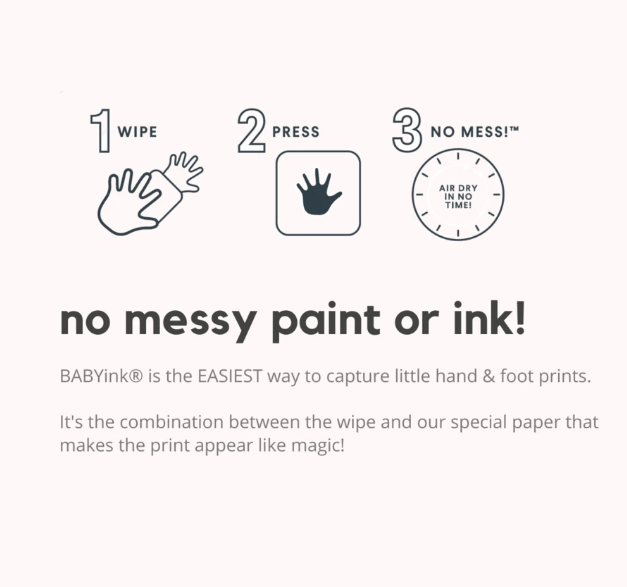 Mess Free, Ink-less and safe to use from birth, BABYink® is the perfect way to capture those special little hand & footprints!