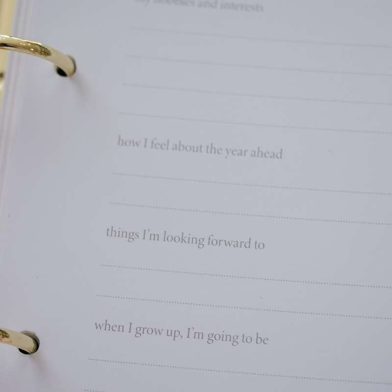 As with all of our baby journals, you can start at any age, choose your own journal prompt sticker, and write as often as you like.
