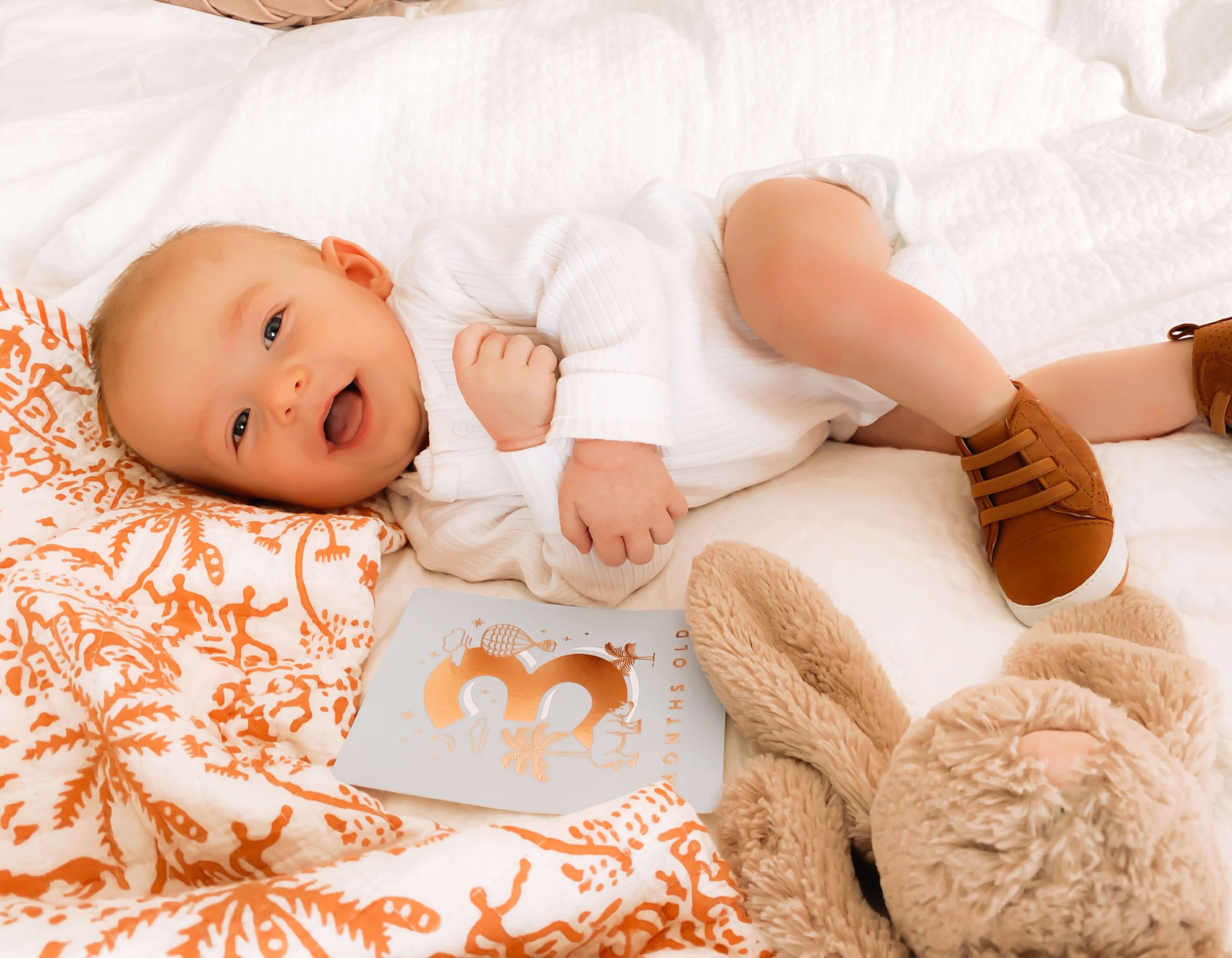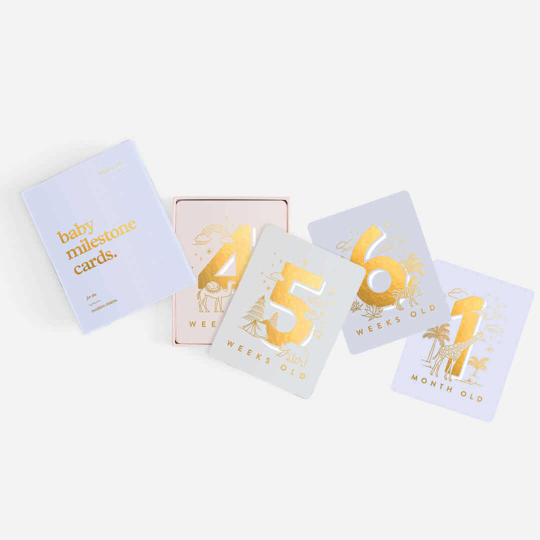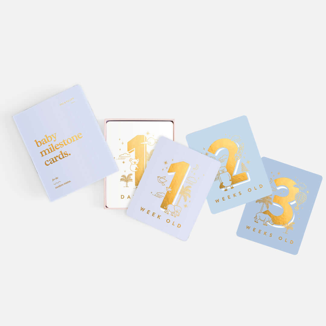 Includes 34 cards with rounded corners safe for little hands, a special card for your birth announcement, plus all the important milestones from one day old to one year old.