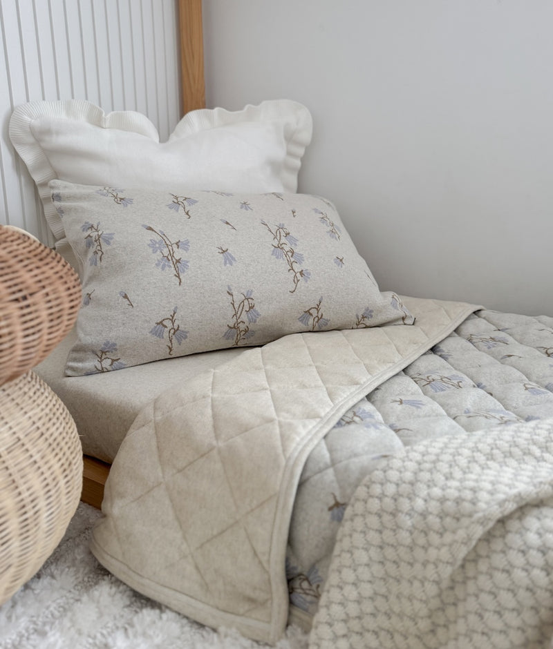 Delicate Pale Bluebell florals on a Natural Marle base, with a plain Natural Marle reverse for a versatile look. Woven from 100% Pure Cotton, our luxuriously soft pillowcases provide maximum comfort and warmth during sleep time.
