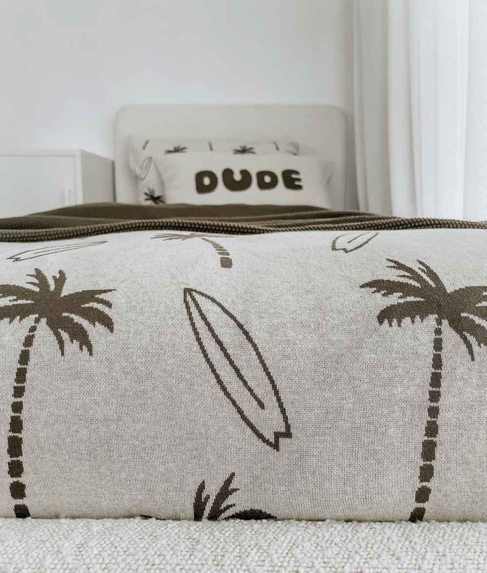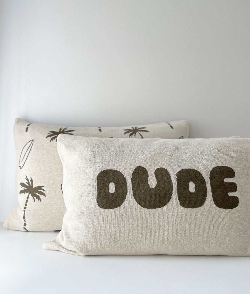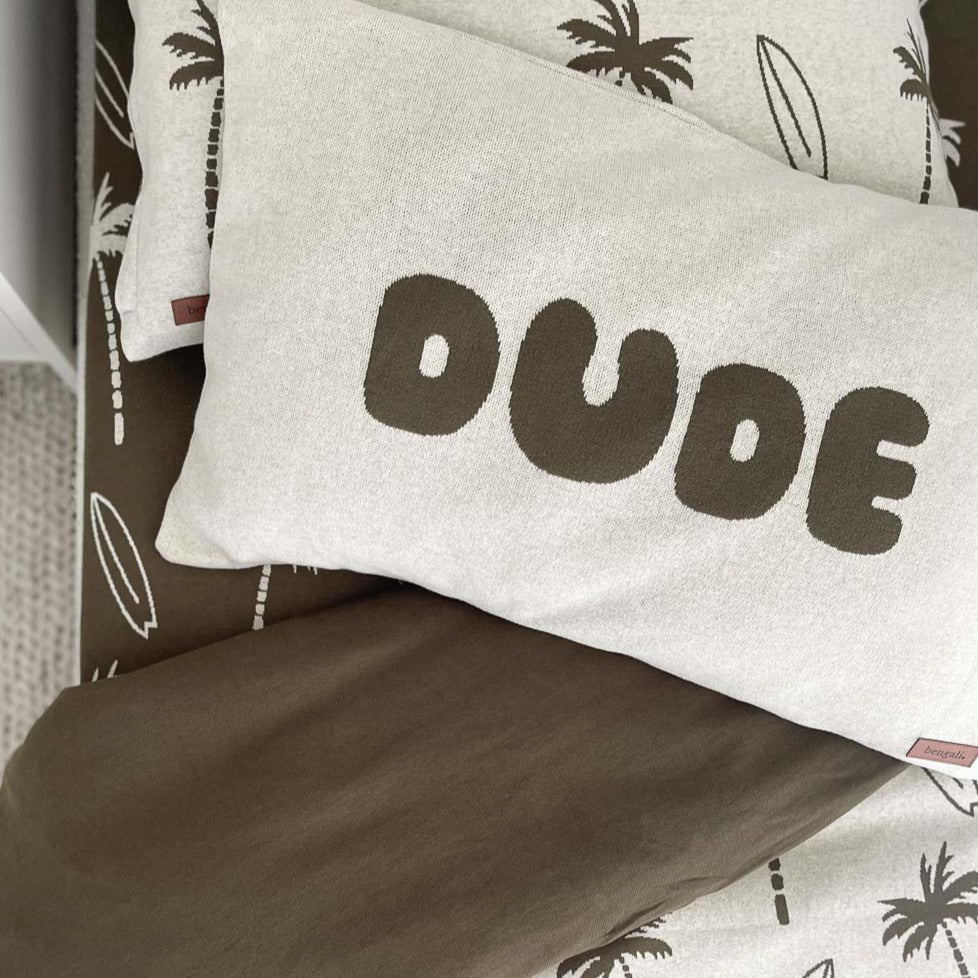 Natural Marle with Olive 'Dude' font, and a Natural Marle reverse. Woven from 100% Pure Cotton. Our luxuriously soft pillowcases  provide maximum comfort and warmth during sleep time.