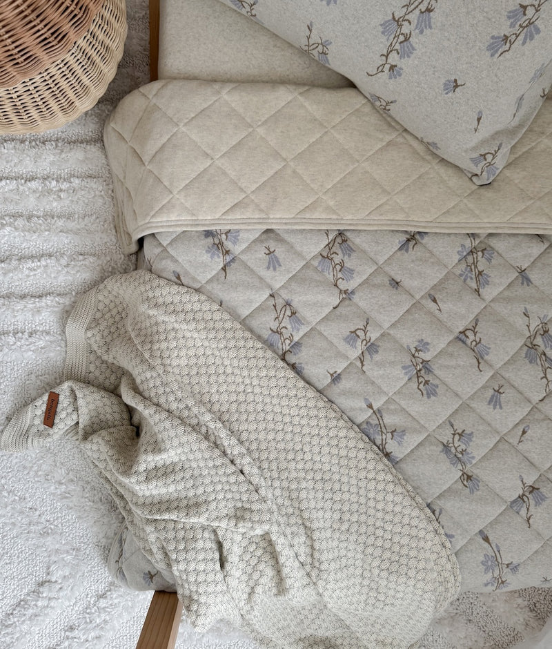Soft, calming and carefully designed — our Bluebell Quilted Coverlet features delicate pale bluebell florals on a natural marle base, with a plain natural marle reverse for a versatile look. Woven from 100% Pure Cotton, it’s luxuriously soft and the perfect layer for cosy sleep, all year round.