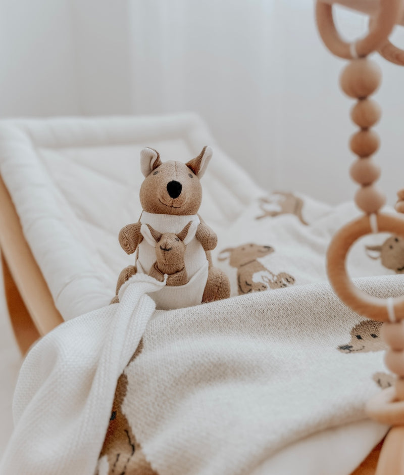 Perfect for naps, cuddles, and comfort, this snuggly pairs beautifully with the Kangaroo Blanket, making it a thoughtful gift for a new baby or expecting mum.