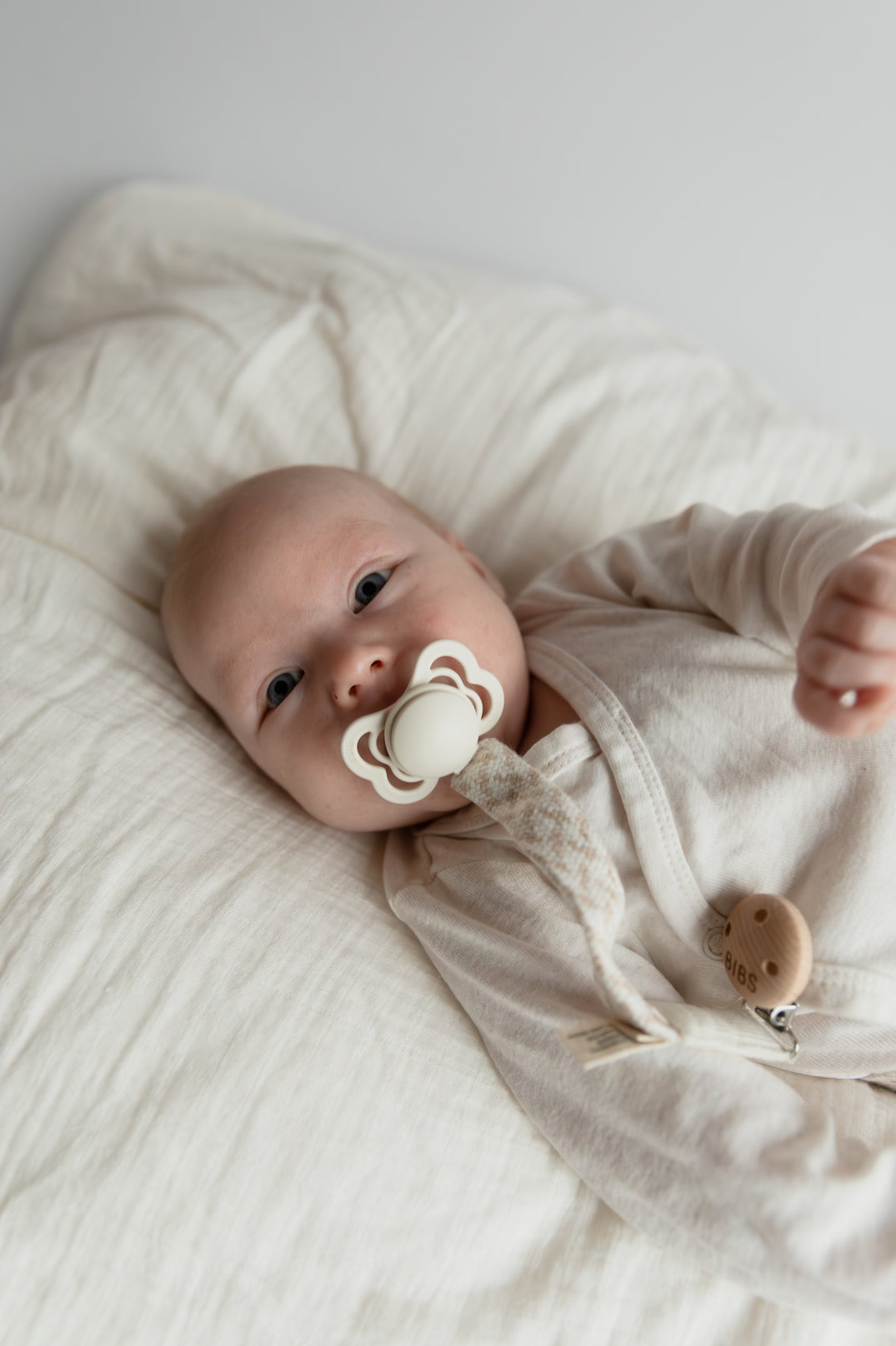 BIBS’ pacifier clip will be the third hand you always wish for and the essential you can’t live without. It is an indispensable accessory that makes everyday life with a baby a bit easier. Our pacifier clips are easy to use – just attach the metal clip to a piece of your child’s clothing and it prevents the pacifier from getting lost, or dirty by falling to the ground or floor. A practical product to be used both at home, in the stroller or out and about.