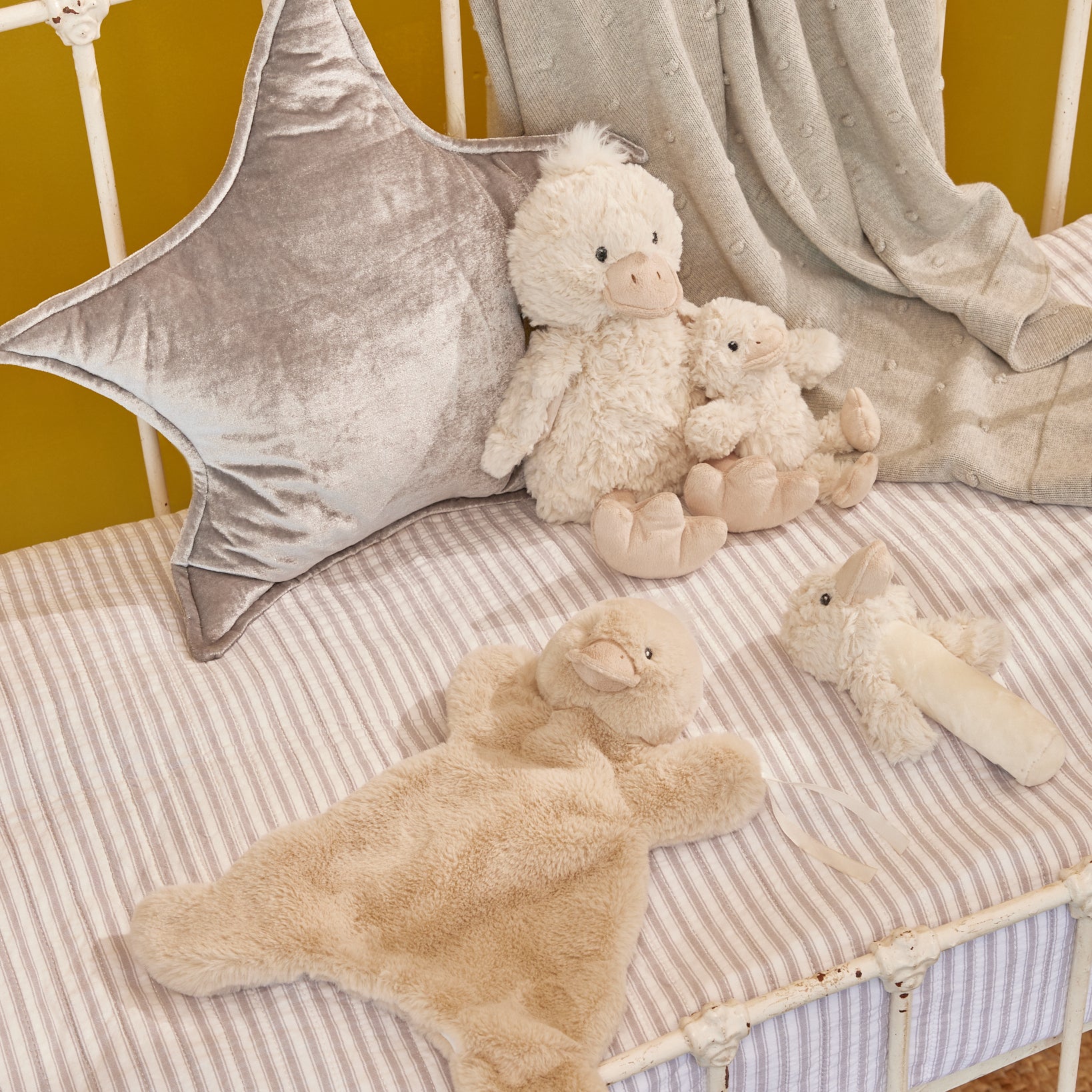 Our revolutionary & oh-so-snuggly baby sleep aid, the Hoochy Coochie puppet comforter! An all-in-one comforter, hand puppet & story time aid, the Hoochy Coochie also includes a secure dummy attachment so your child will always have a soother close to hand. With a nifty hand-sized pocket, the Hoochy Coochie can be used as a puppet before bedtime, a convenient way to captivate babies & toddlers & help them relax. They can then quietly cuddle up to their Hoochy Coochie as they drift off to sleep. Hoochy Coochies are designed to be favourites, those extra special toys that young children form an attachment to, keeping them close wherever they go, & using them as self-soothing aids.