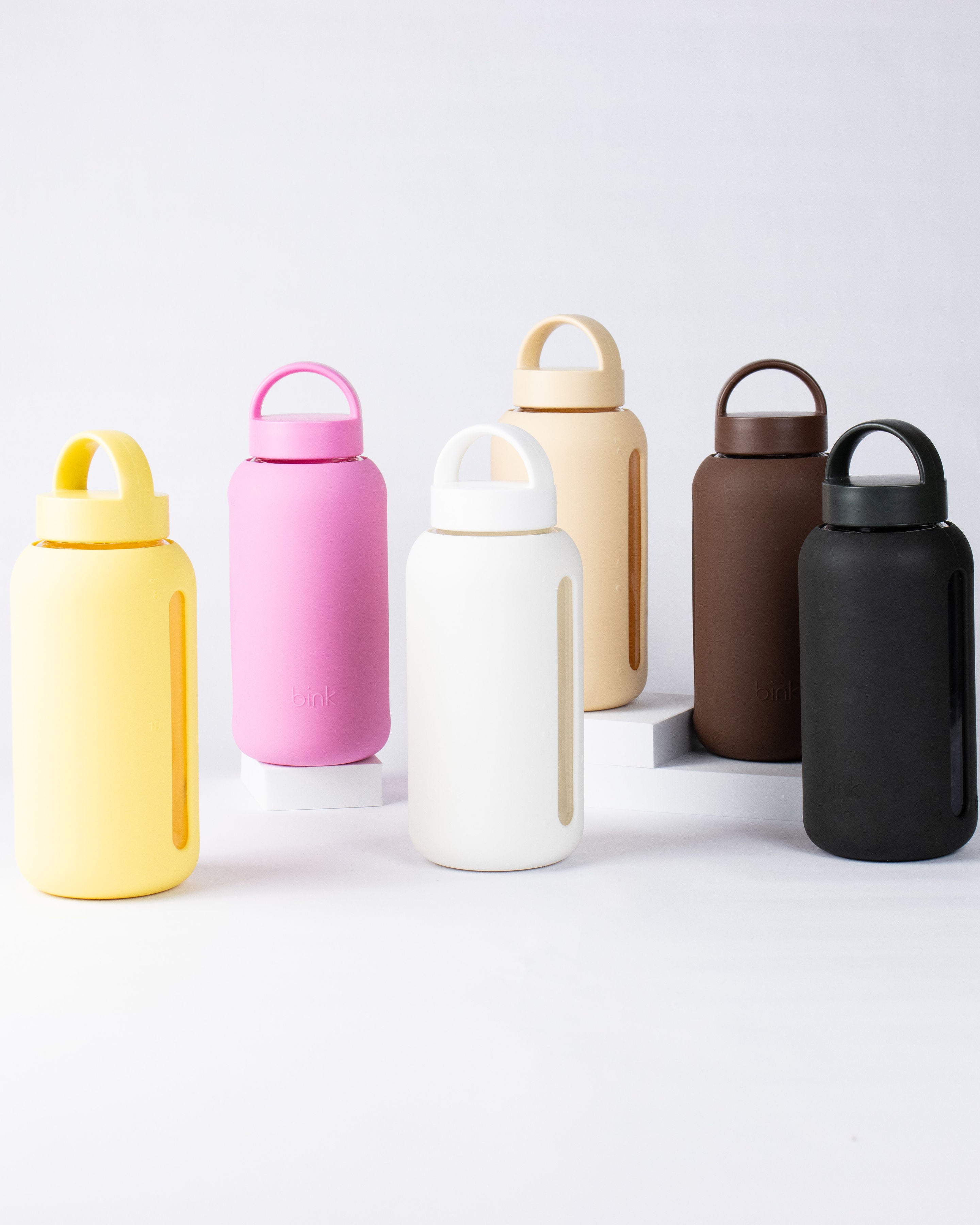 A simple glass water bottle with hydration tracking designed to help you meet your daily recommended water needs. Because your health is your greatest asset, and drinking enough water should never feel abstract or unattainable.