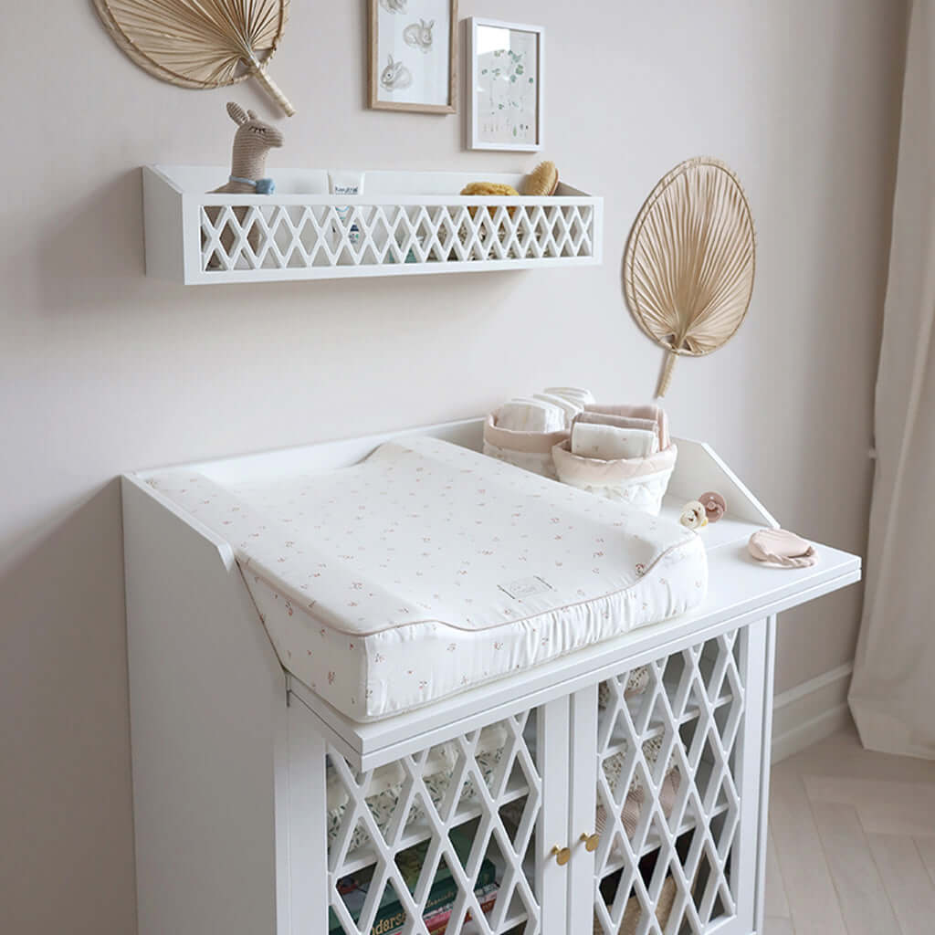 The quilted storage baskets are practical for organizing at the changing table, in your nursery, or at the bathroom. The baskets are made of OCS certified organic cotton, and have a pretty quilting.