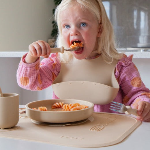 - Embossed tableware design helps your child set the table