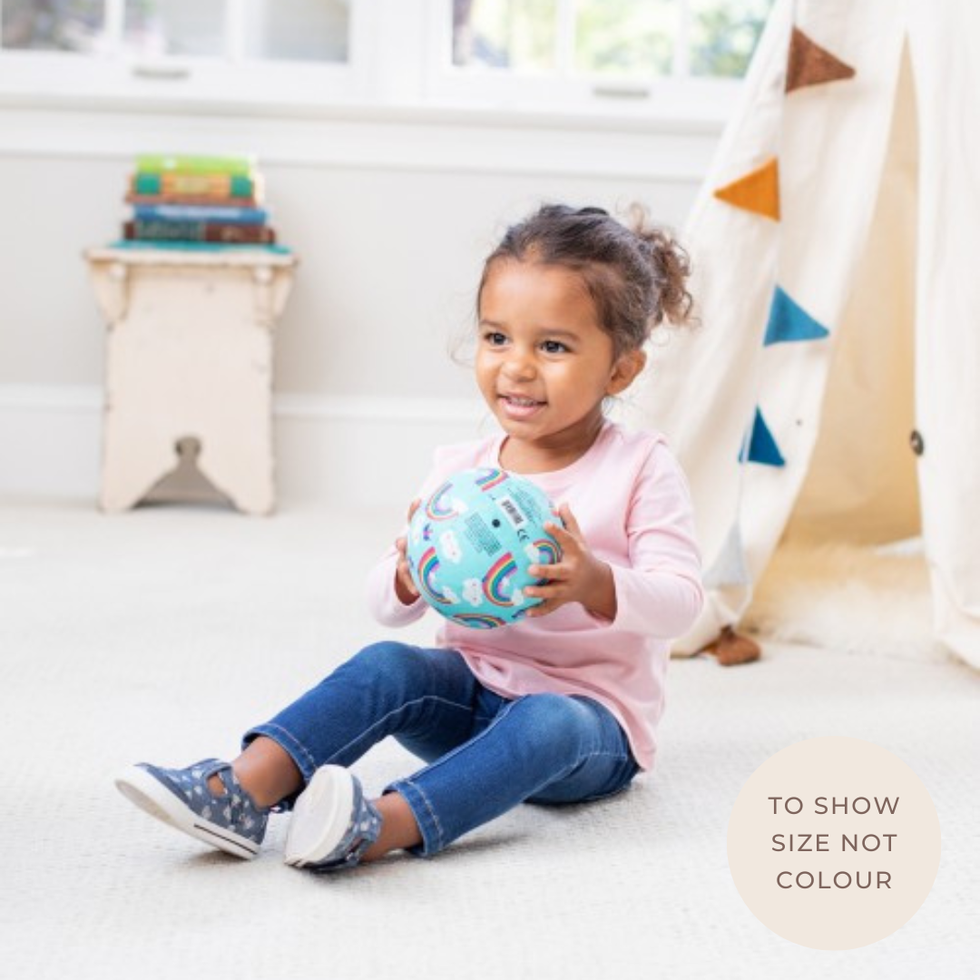 Heavy-duty inflatable play balls that are made from high-quality natural and synthetic rubber. Beautiful designs with a textured surface for great grip. Teaches fundamental kicking, throwing, and catching skills. PVC & BPA free.