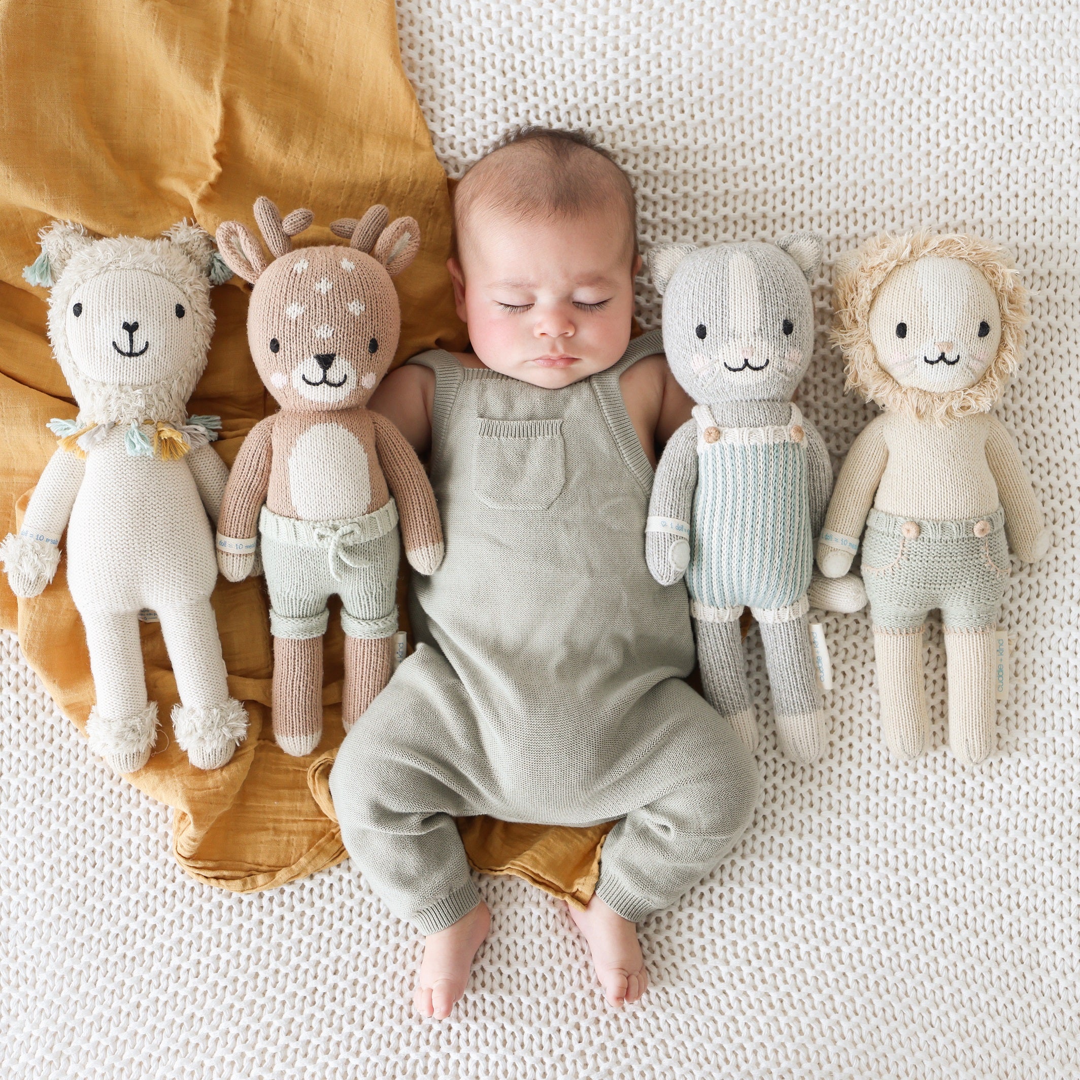 We design cuddle+kind dolls to be loved by children of all ages. Each of our dolls are safety tested, with most of the collection safe for newborns and up. Due to the intricacy of our hand-knit mermaids, we recommend those dolls for children aged 24m+. We recommend young children be supervised when playing with all toys, including our dolls.