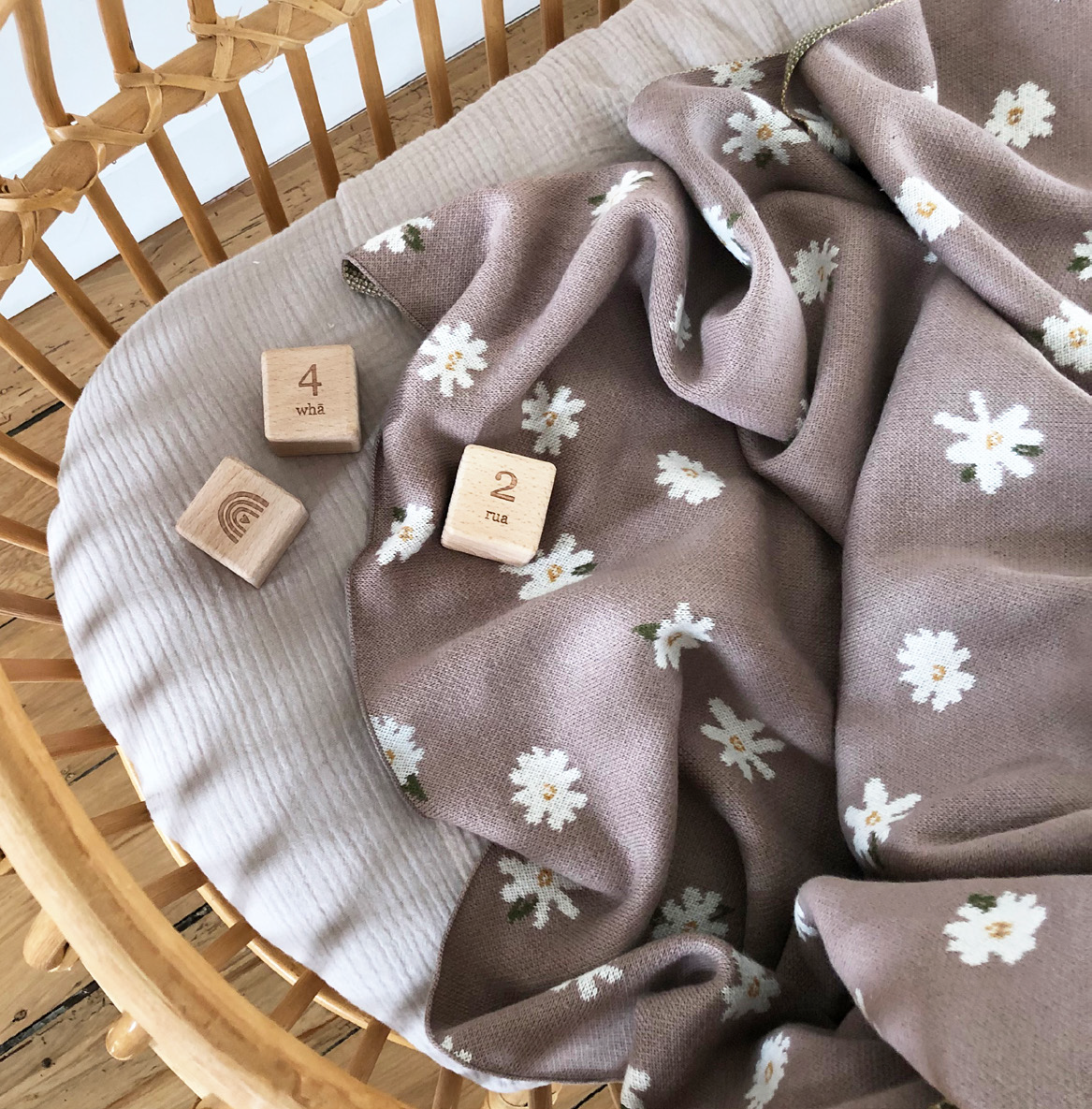 Knitted Heirloom Blanket | Daisy | Mushroom
