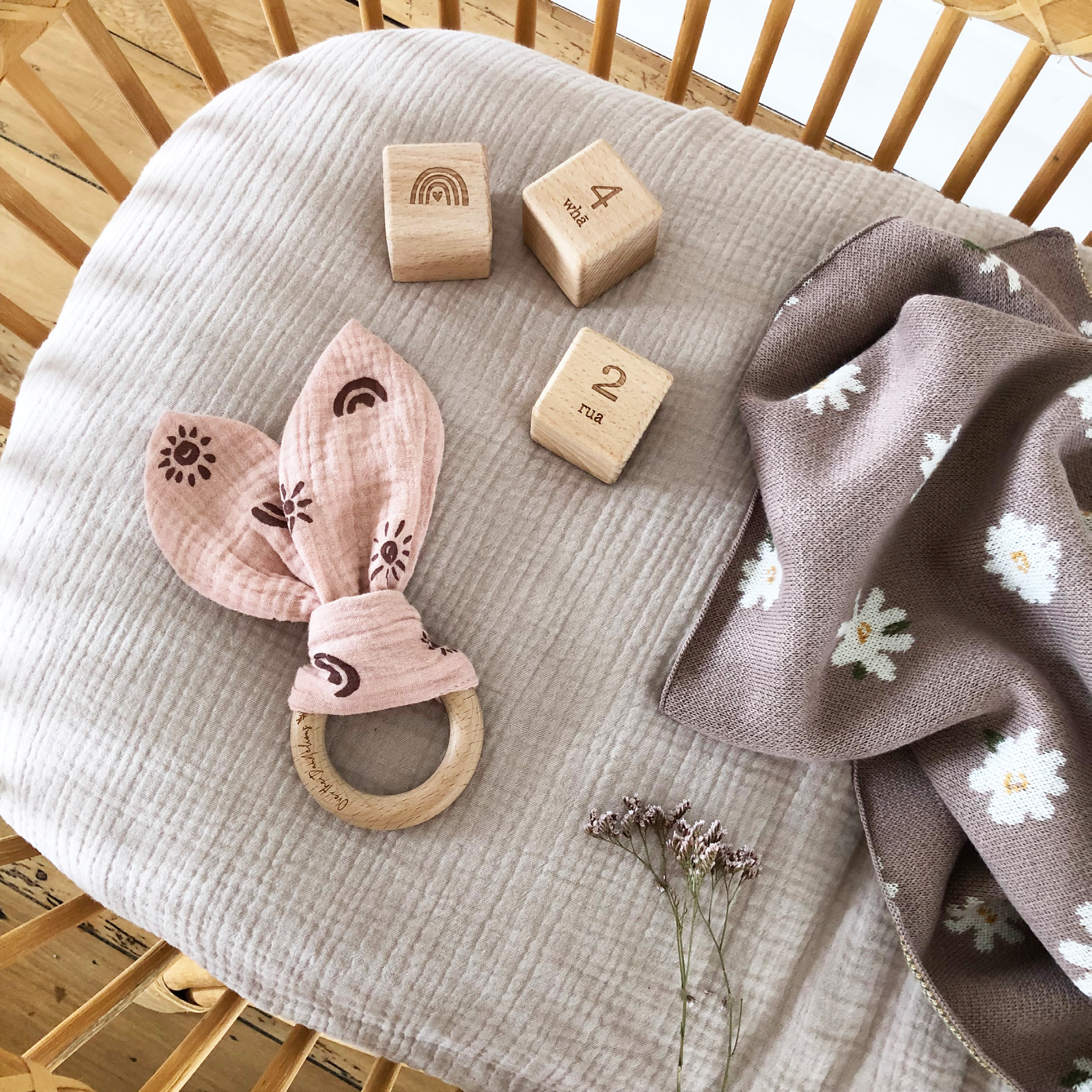 The organic cotton is soft, warm and cuddly. Perfect to use as a pram blanket, a cot layer or as a nursery décor item.