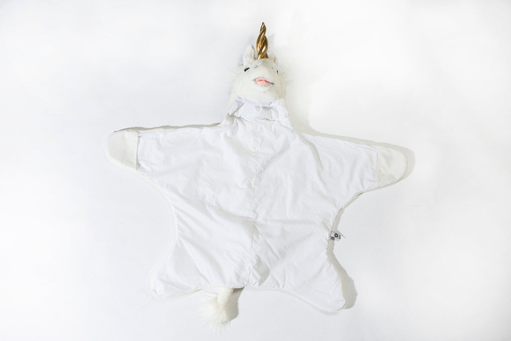 The animal costume can be used in many ways: as a fun costume, unique rug, a soft games mat or a warm blanket.