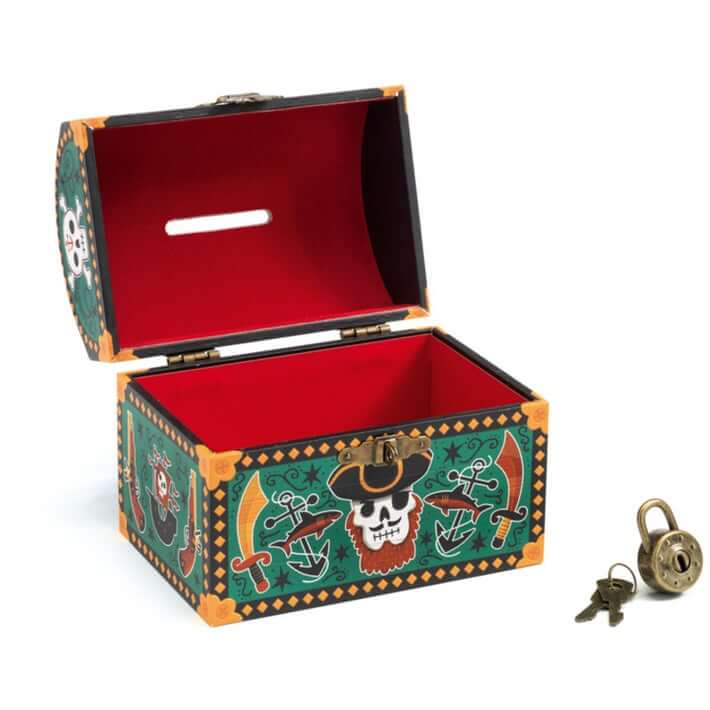 Features a metal edged slot sliding in their change and a metal padlock and key for retrieving money.