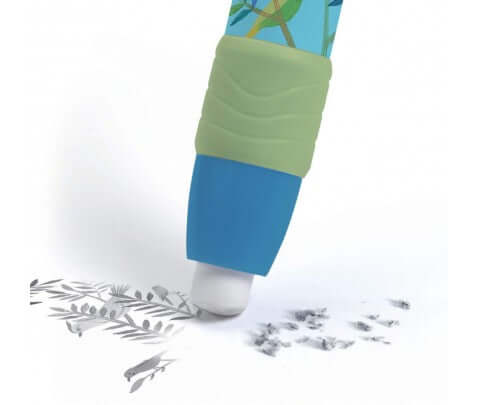 A handy eraser in a beautifully illustrated pen with a non-slip section for a secure grip