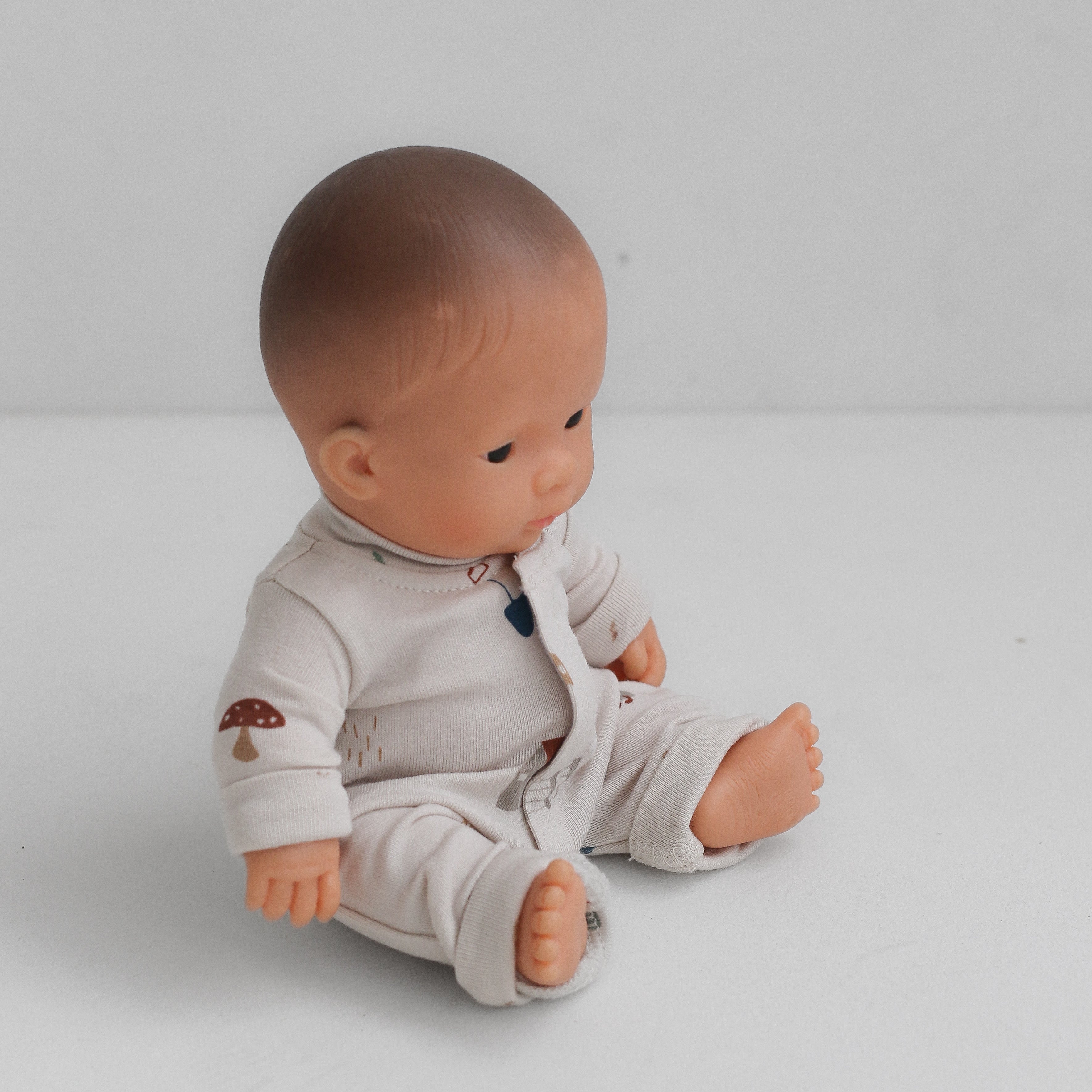 The look of delight a child has when they can match with their baby doll. Perfect for gifting alongside the childrens dress or as a gift for the sibling with a new baby dressed in the Simple Life zip suit or even on its own the Simple Life doll romper will give joy through the act of play.