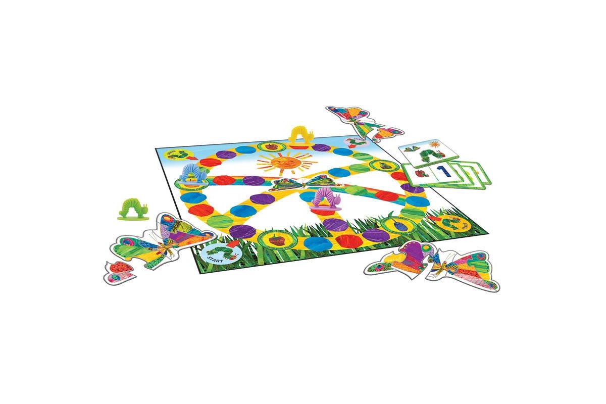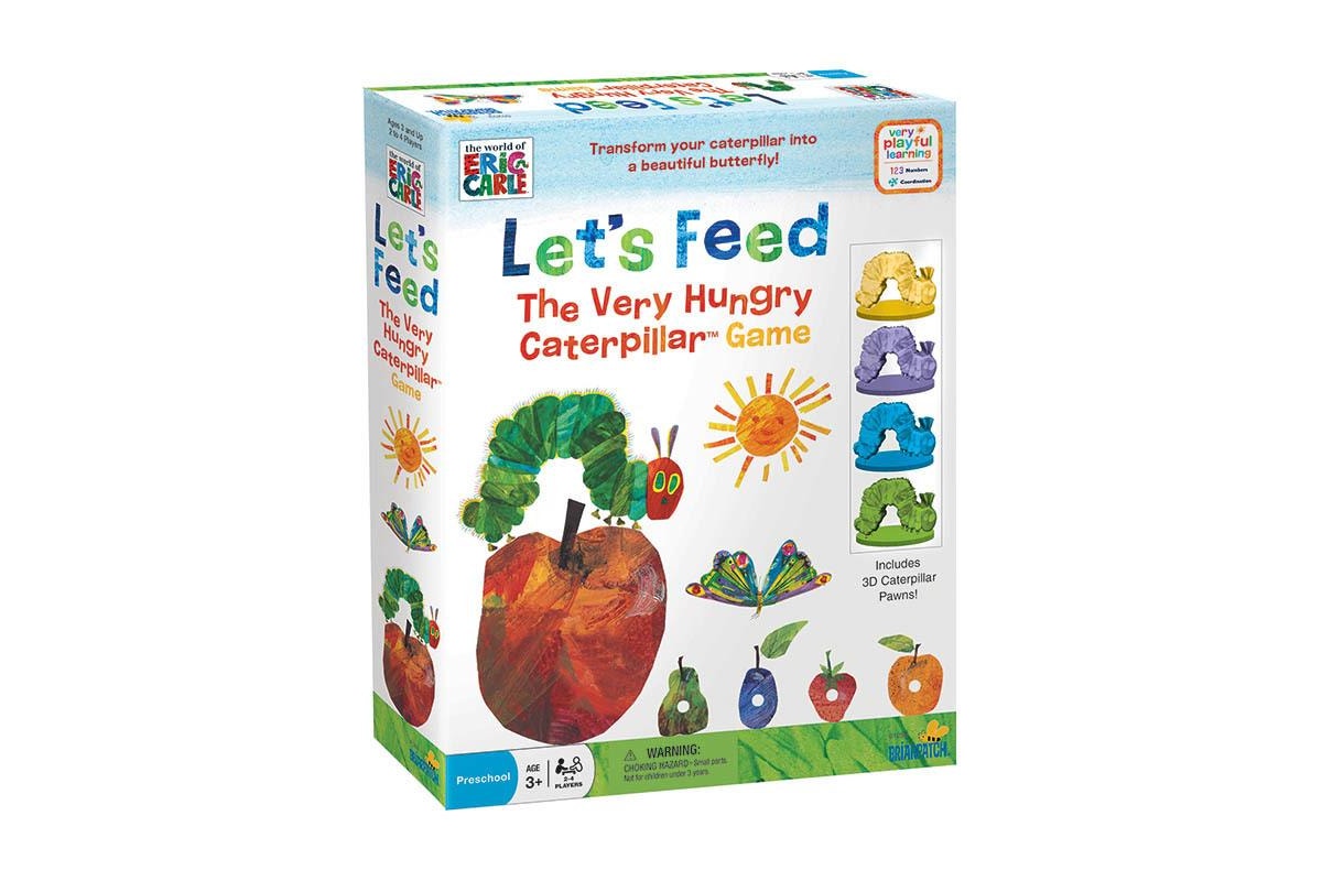 Eric Carle Let’s Feed the VHC Game children move colorful, 3D sculpted caterpillars from fruit to fruit, collecting a unique butterfly puzzle piece each time they stop to ""eat."" The first player to collect all five puzzle pieces and build a beautiful butterfly wins the game! Children practice decision-making by moving any direction on the board. They mix and match beautiful butterfly illustrations to create a different work of art every game. No reading required.