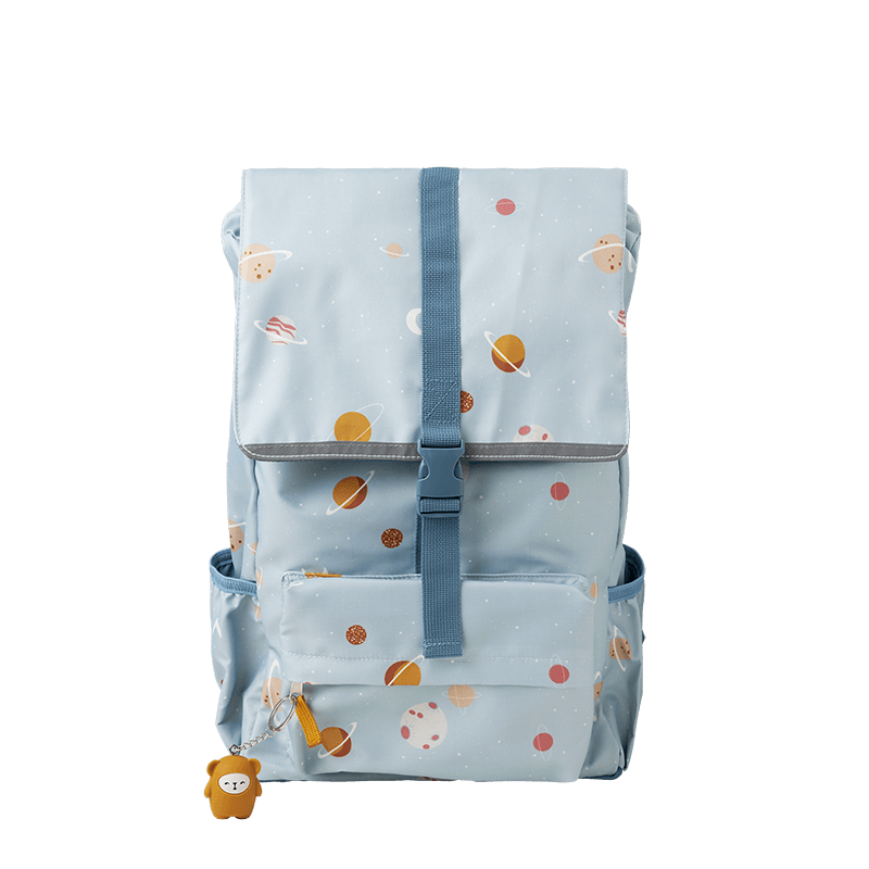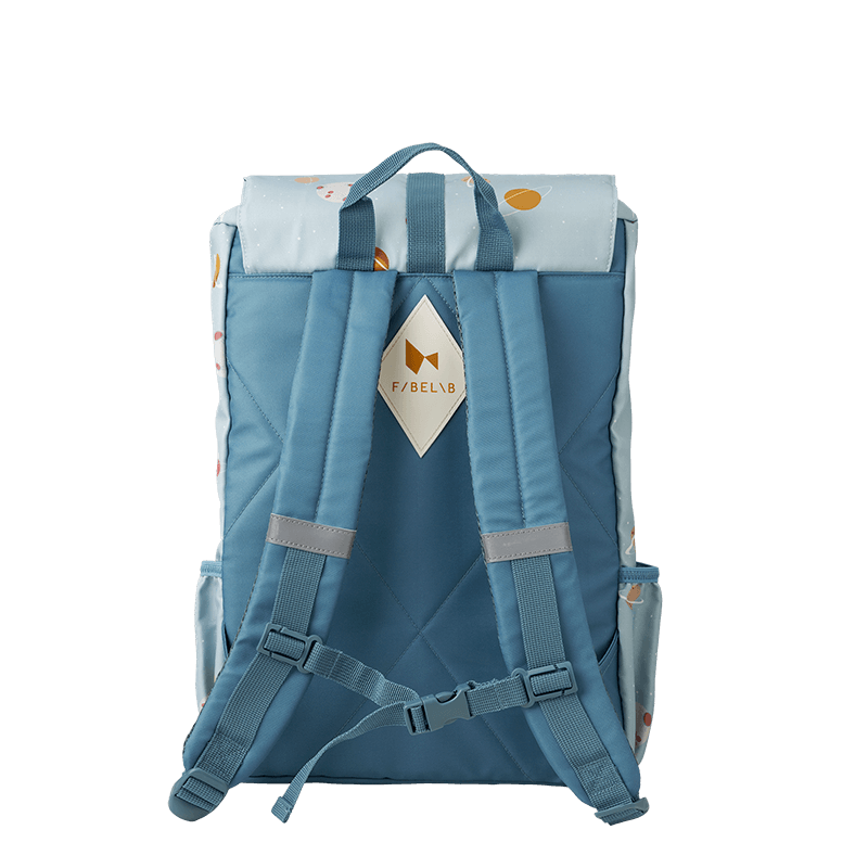The Backpack's outer and inner shell fabric is made from recycled post-consumer polyester and this version comes in a bold and playful Flower print. As an extra feature, we have added Fabelab’s mascot, a Bob the Bear keychain to the backpack for a cute and playful twist. Kids can use this separate for safekeeping bikes or scooter keys. Recycled Post-Consumer Polyester has used plastic bottles that are cleaned, shredded, and spun into a thread to reuse for production.