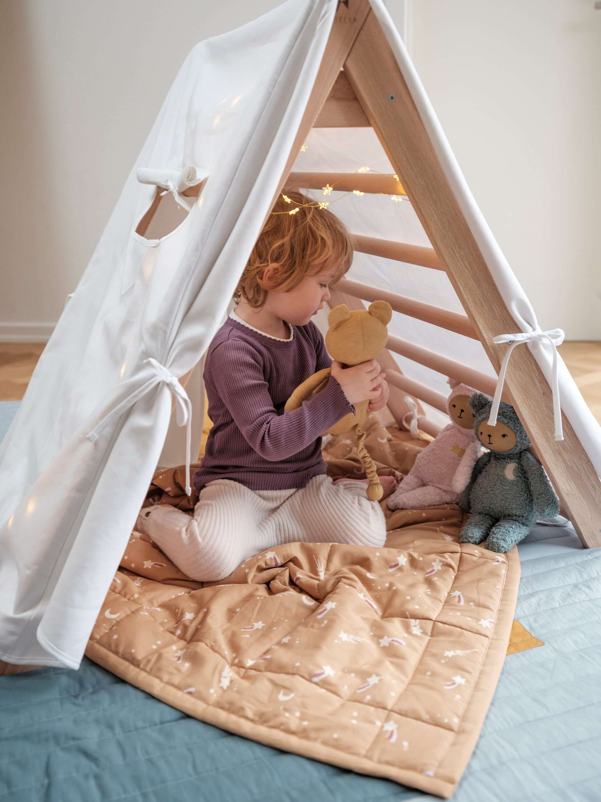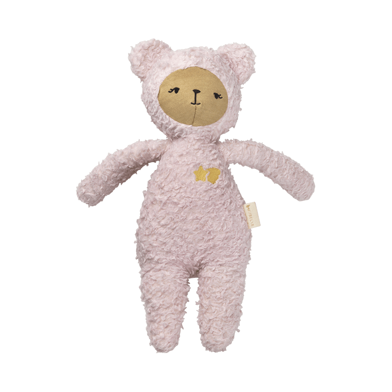The next destination is the Land of Fabelab, and she can’t wait to see her cousin, Bob, the Bear. Made from the most fluffy organic cotton sherpa, The Stardust Bear is the most huggable and loveable Buddy. She is filled with corn fibre and recycled polyester blend and lots of love.