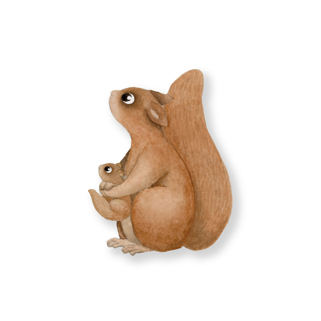 Decorate the walls of your children's room with a mother squirrel and her young. The wall sticker is removable and easy to apply to most surfaces, such as painted walls, furniture, mirrors and thicker wallpapers. Size: 25cm tall