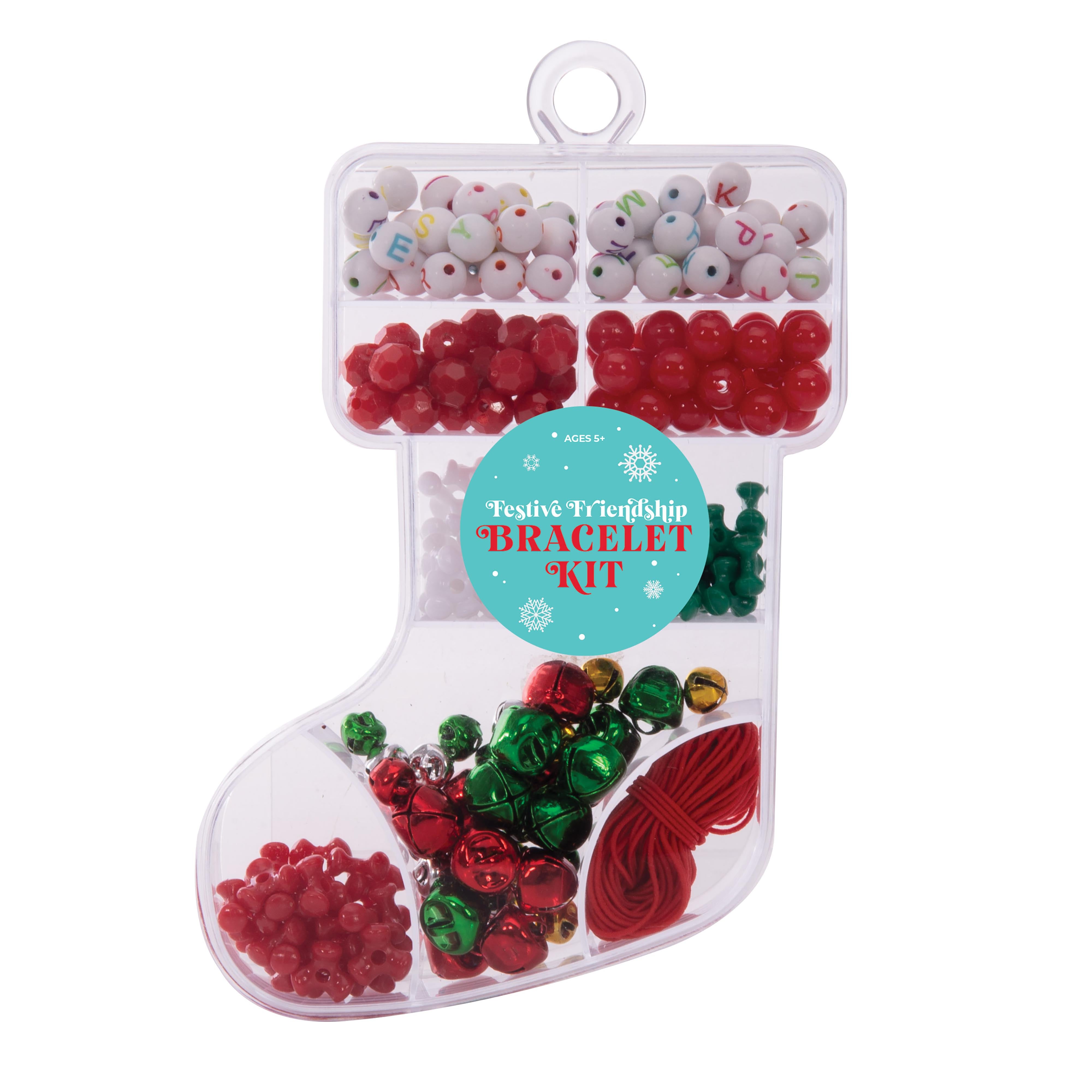 Each kit comes packed full of beads and accessories in a handy stocking-shaped case.