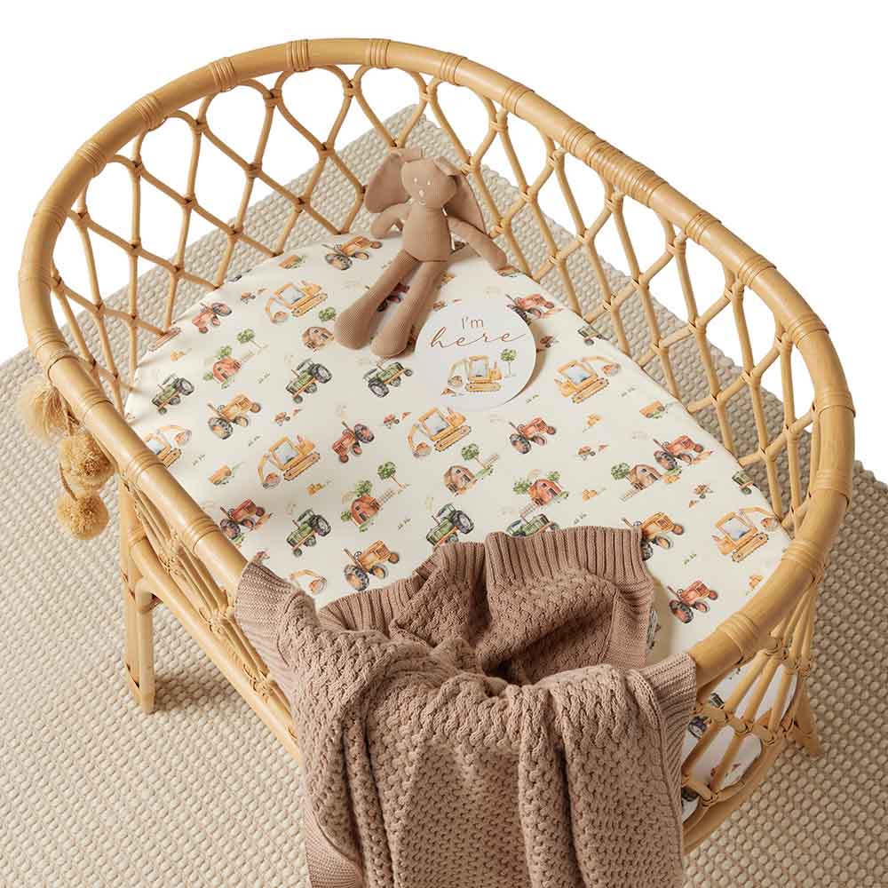 Fitted Bassinet Sheet | Changing Mat Cover | Diggers & Tractors
