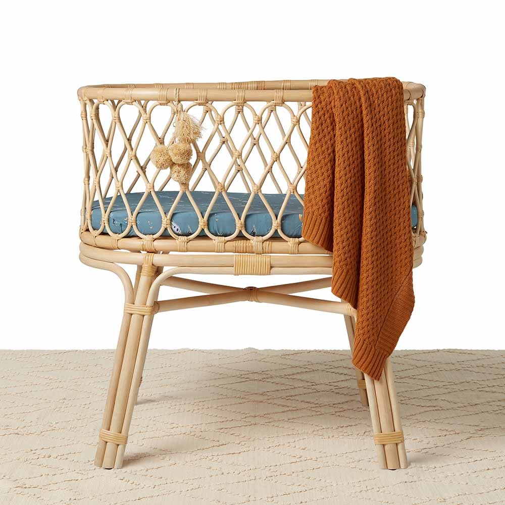 All season fitted bassinet sheet in Certified Organic Cotton. Multipurpose use as a change pad cover.