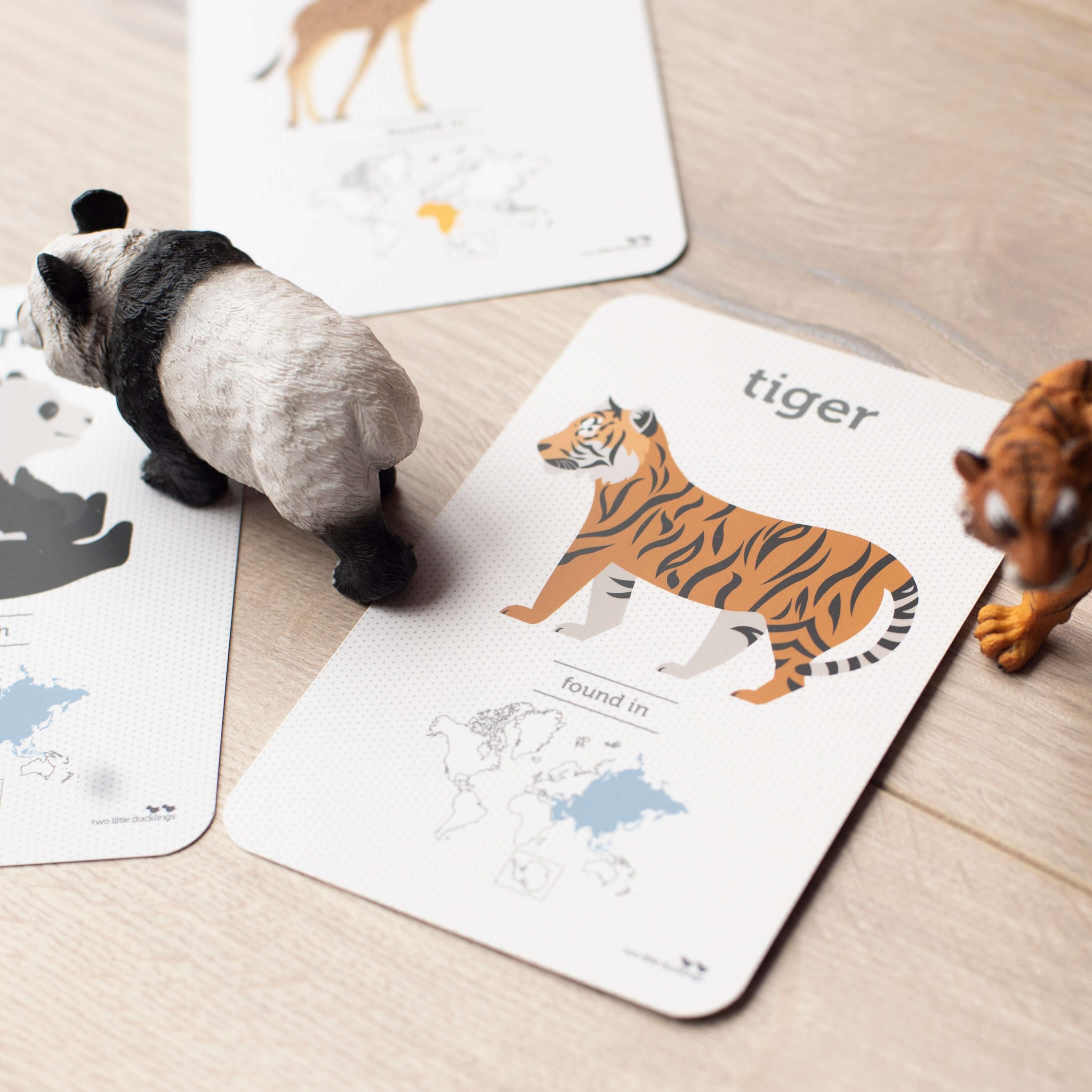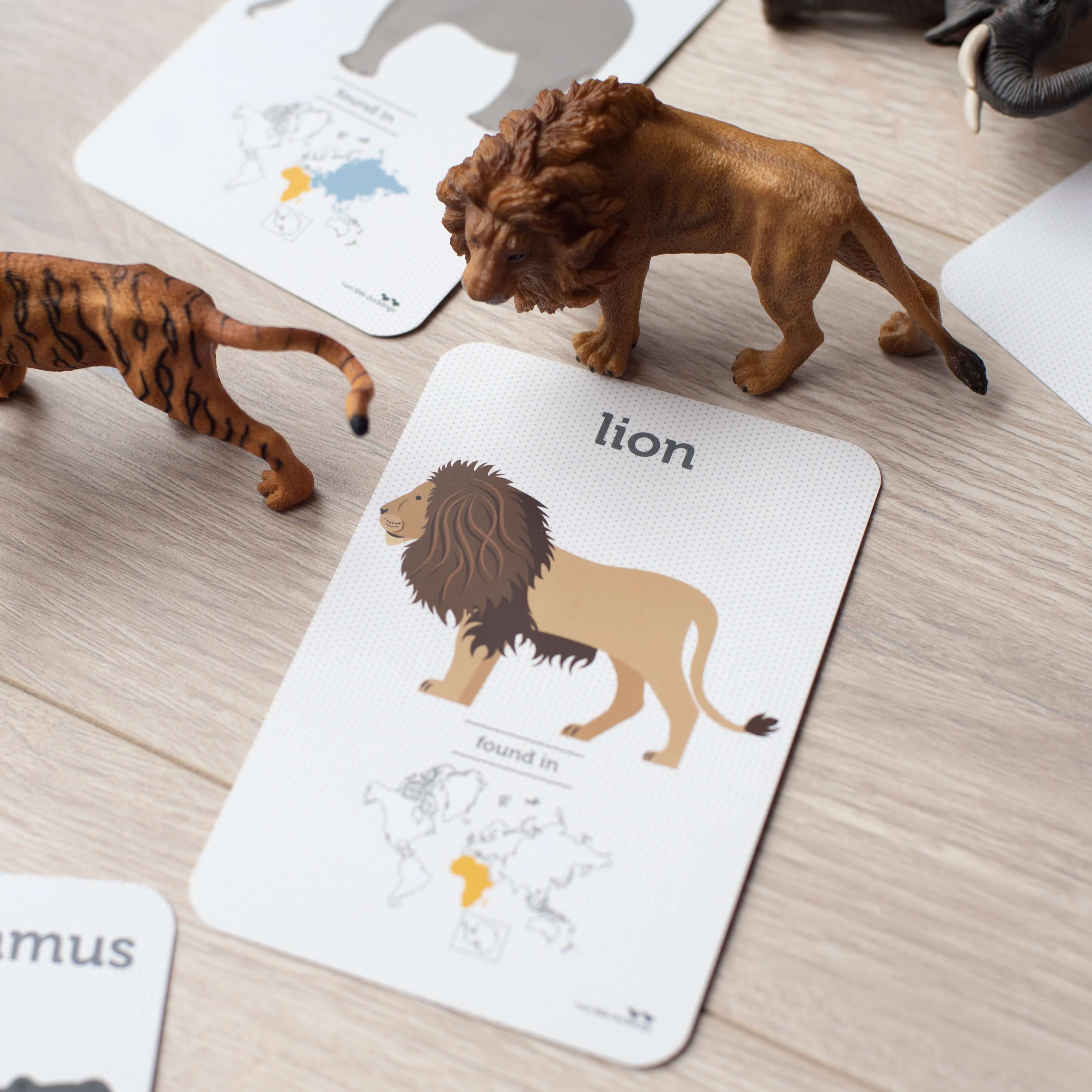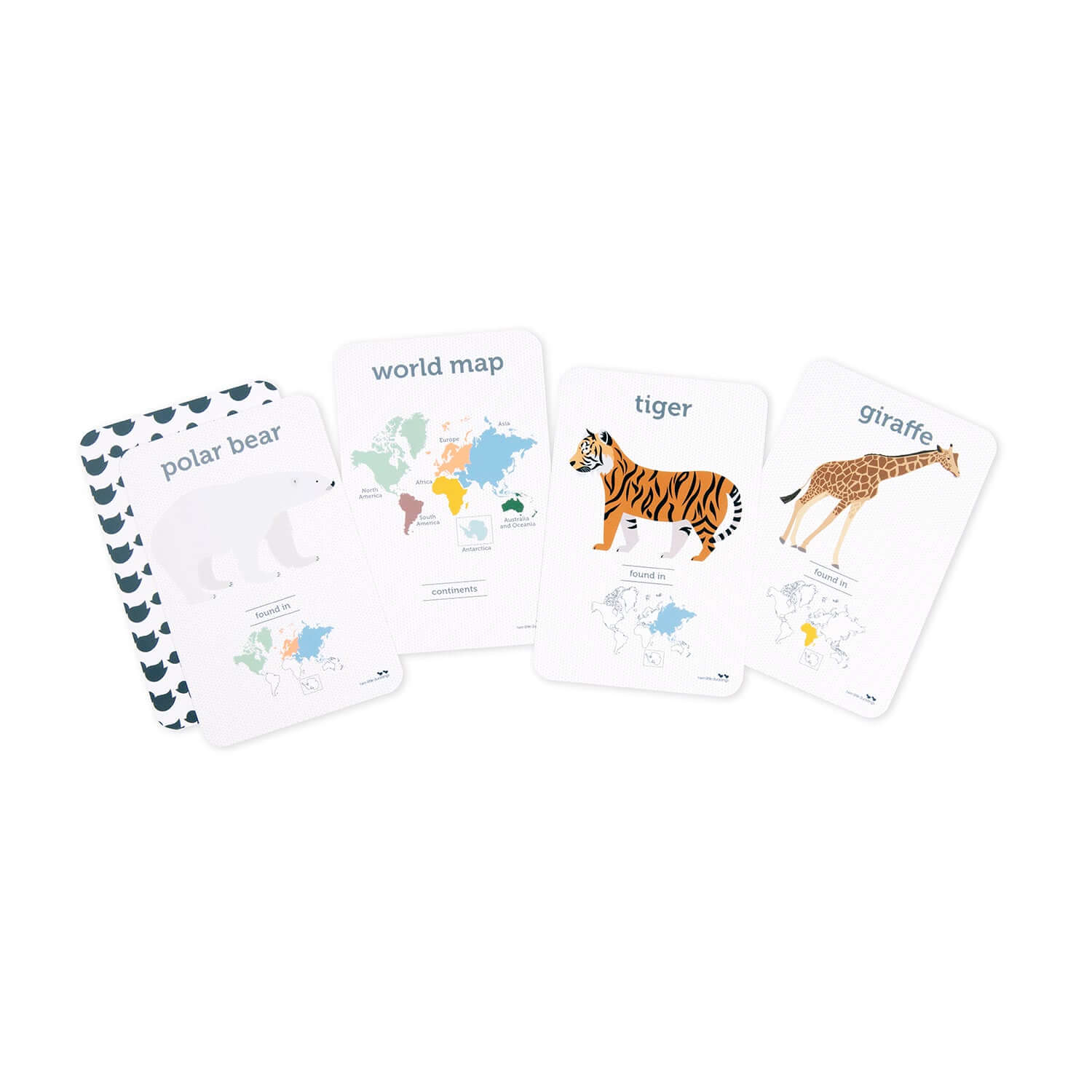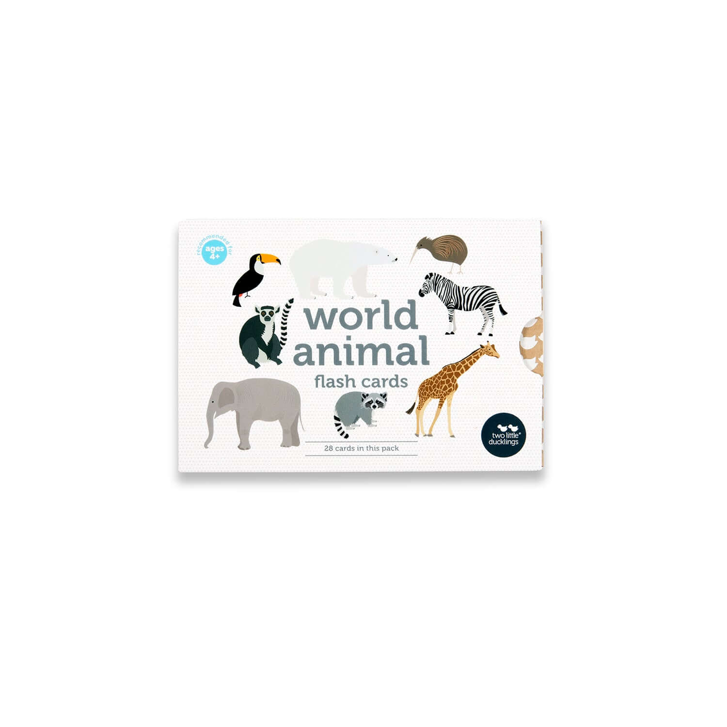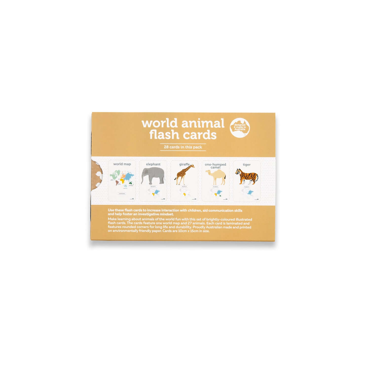 Make learning about animals of the world fun with this set of brightly-coloured illustrated flash cards. The cards feature one world map and 27 animals. Each card is laminated and features rounded corners for long life and durability. Proudly Australian made and printed on environmentally friendly paper. Cards are 10cm x 15cm in size.