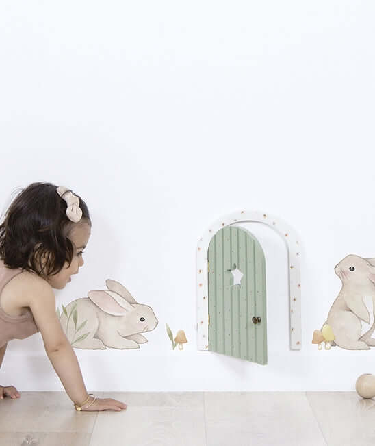These wall decals with adorable bunnies are a perfect touch to bring softness and a natural feel in the child’s room! Each bunny is approximately 20cm high. Can be placed at the bottom of a wall or along a shelf.