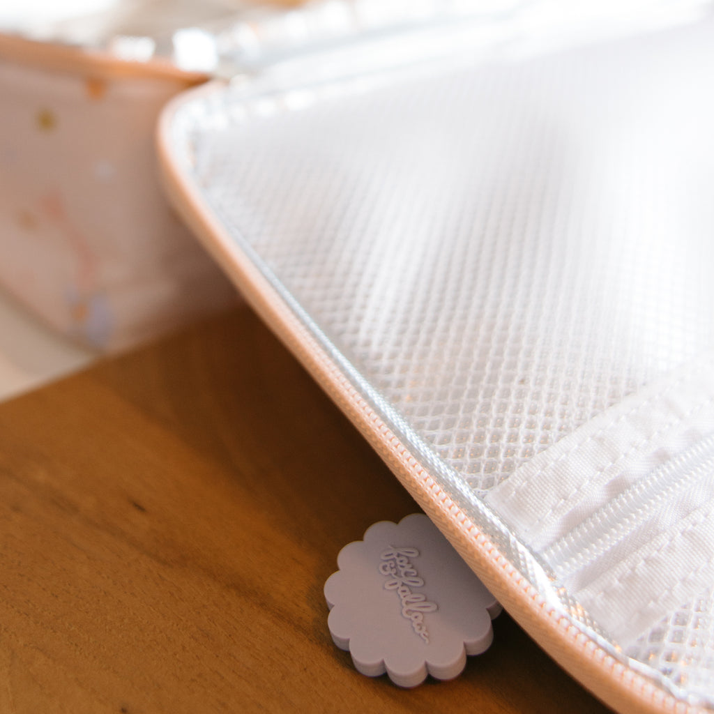 We’ve got dual pockets (one on each side) for water bottles, bucket hats, even toys or shoes and there’s two bonus zips inside as well as a generous outer pocket with a super cute scalloped rubber zipper pull.